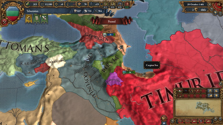 黒海側にCircassiaやGeorgiaも残っていますが。両国ともキリスト教国なので初期の改宗は手間ですし、属国にするのもLiberty Desireが心配になります。