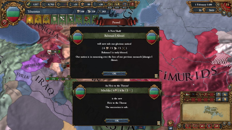 行動に次ぐ行動。時は1543年。なのに未だ我々はTabarestan。誇り高きPersiaを襲名するための土地は、とっくに押さえているのですが、Persiaとかいう益体もない国が存続しているために国家変態が果たせておりません。
