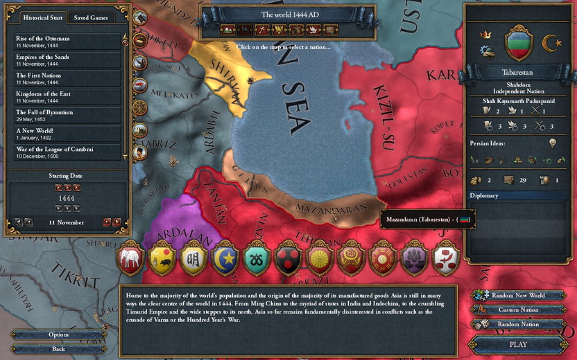 Tabarestanは1444において、NIがPersiaの唯一の国家。規模は小さいながら、時世に雄飛する条件は整っています。