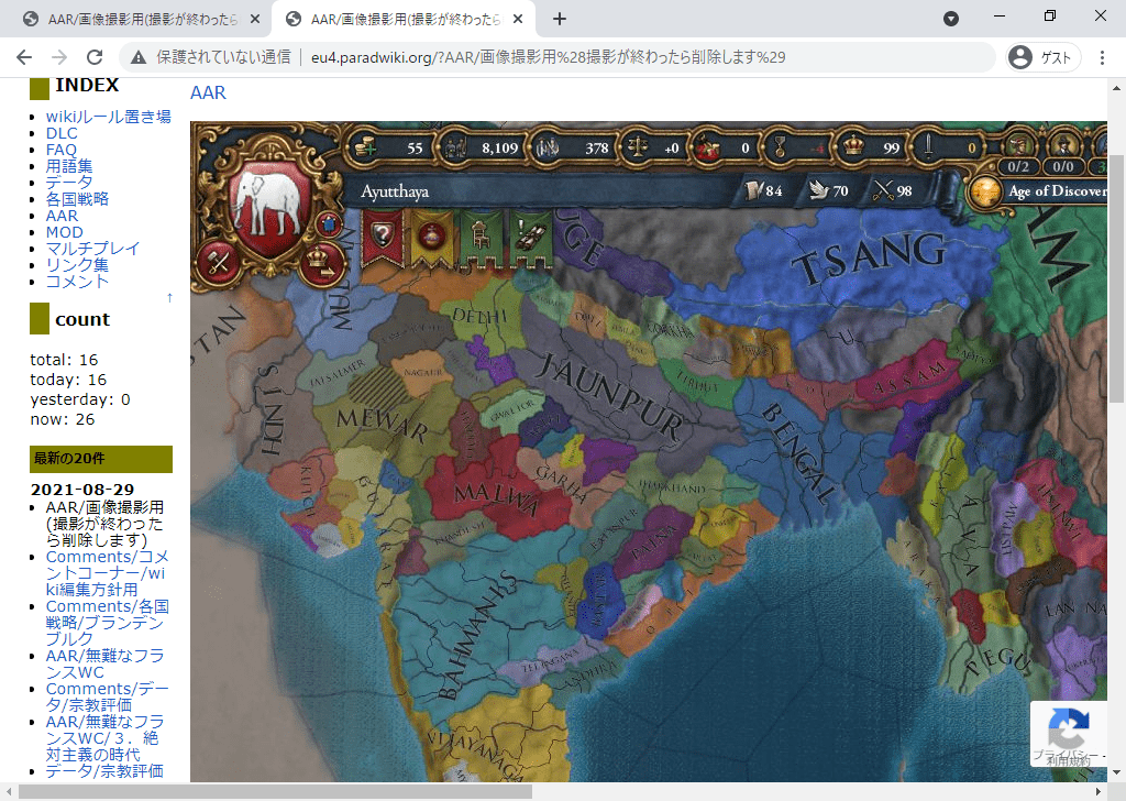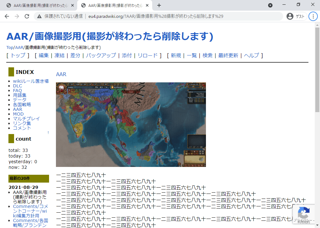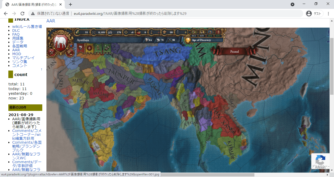 読みやすいAARには画像がつきものですが、Wiki上の画像表示サイズと閲覧者の環境(解像度等)によっては画像全容の視認が難しい場合があります。