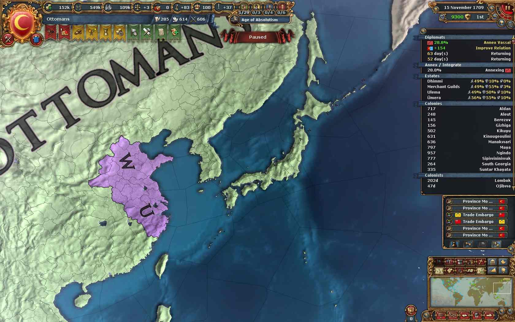 属国Wuの外交併合により、中華圏の制覇が完了しました。