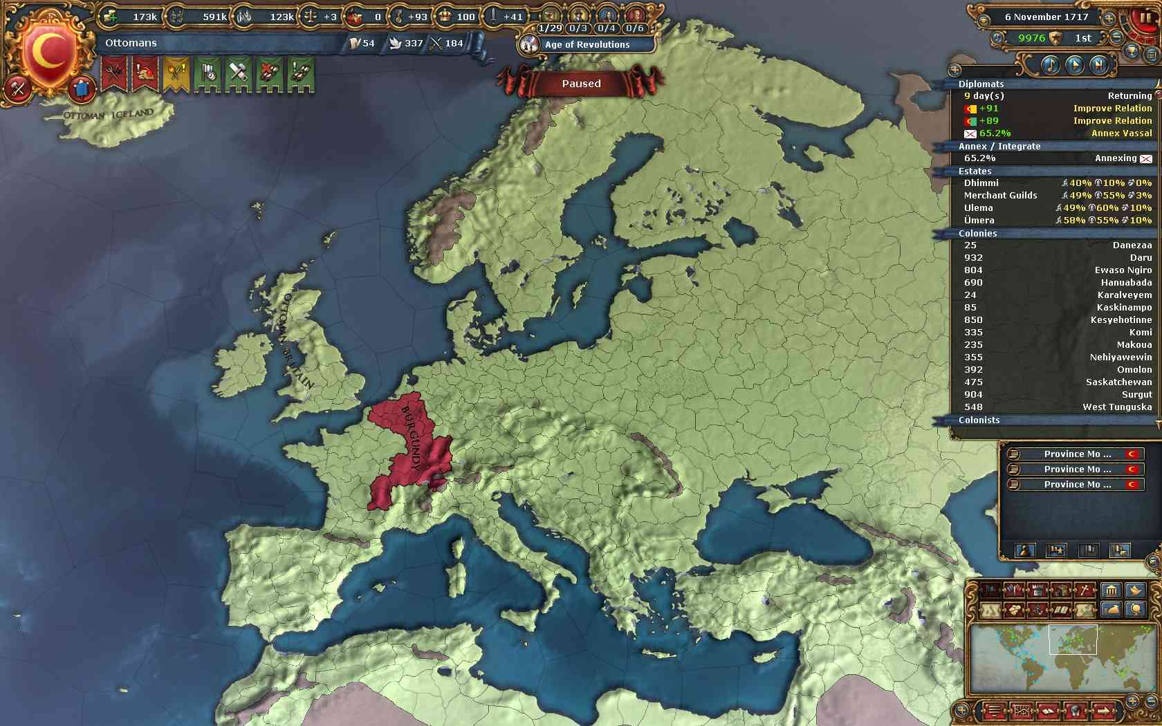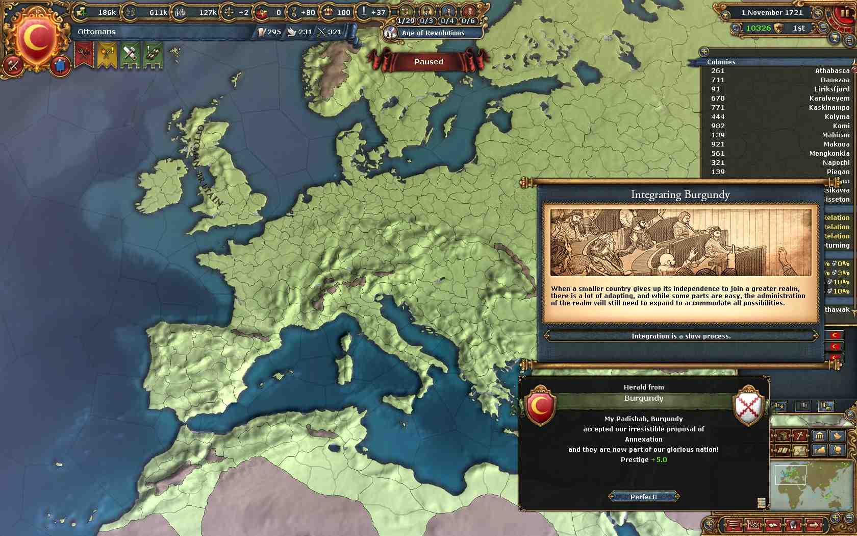 1721年、最後の属国であるBurgundyの外交併合が完了。
