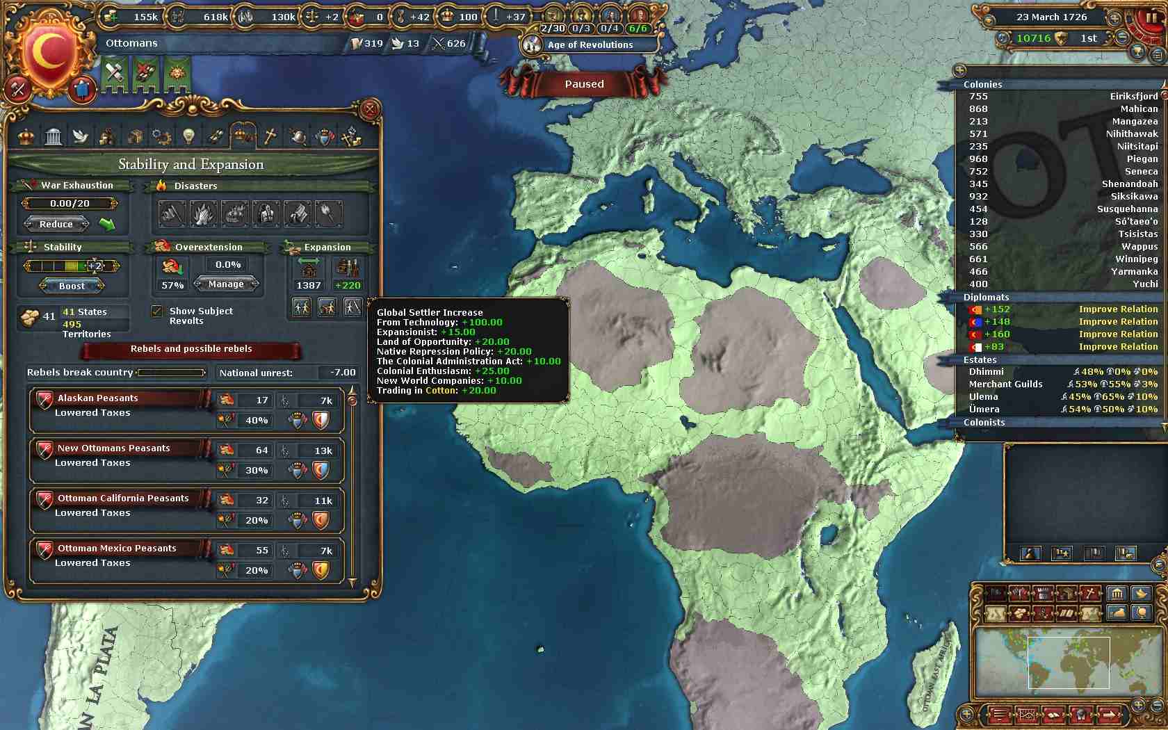 幸運なことに君主に植民数UPのtraitsが付いています。