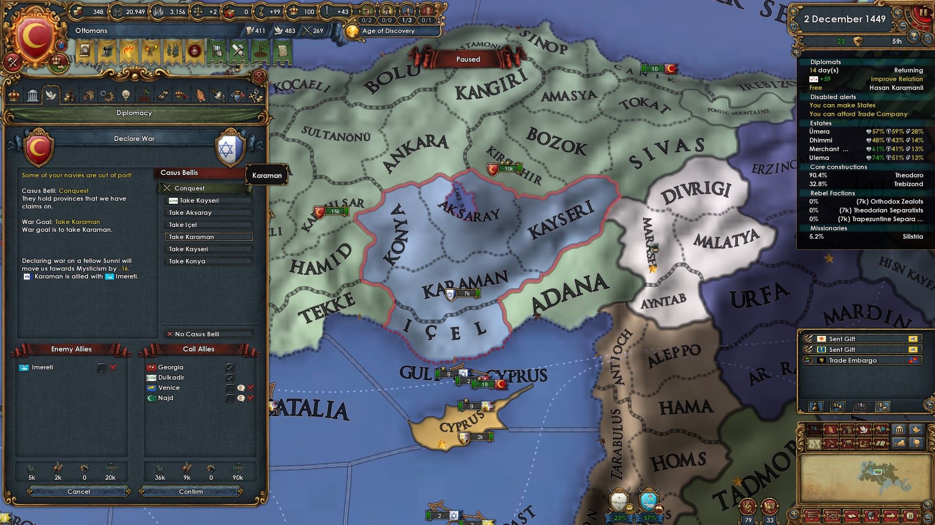 停戦期間が過ぎたのでカラマンに宣戦布告。