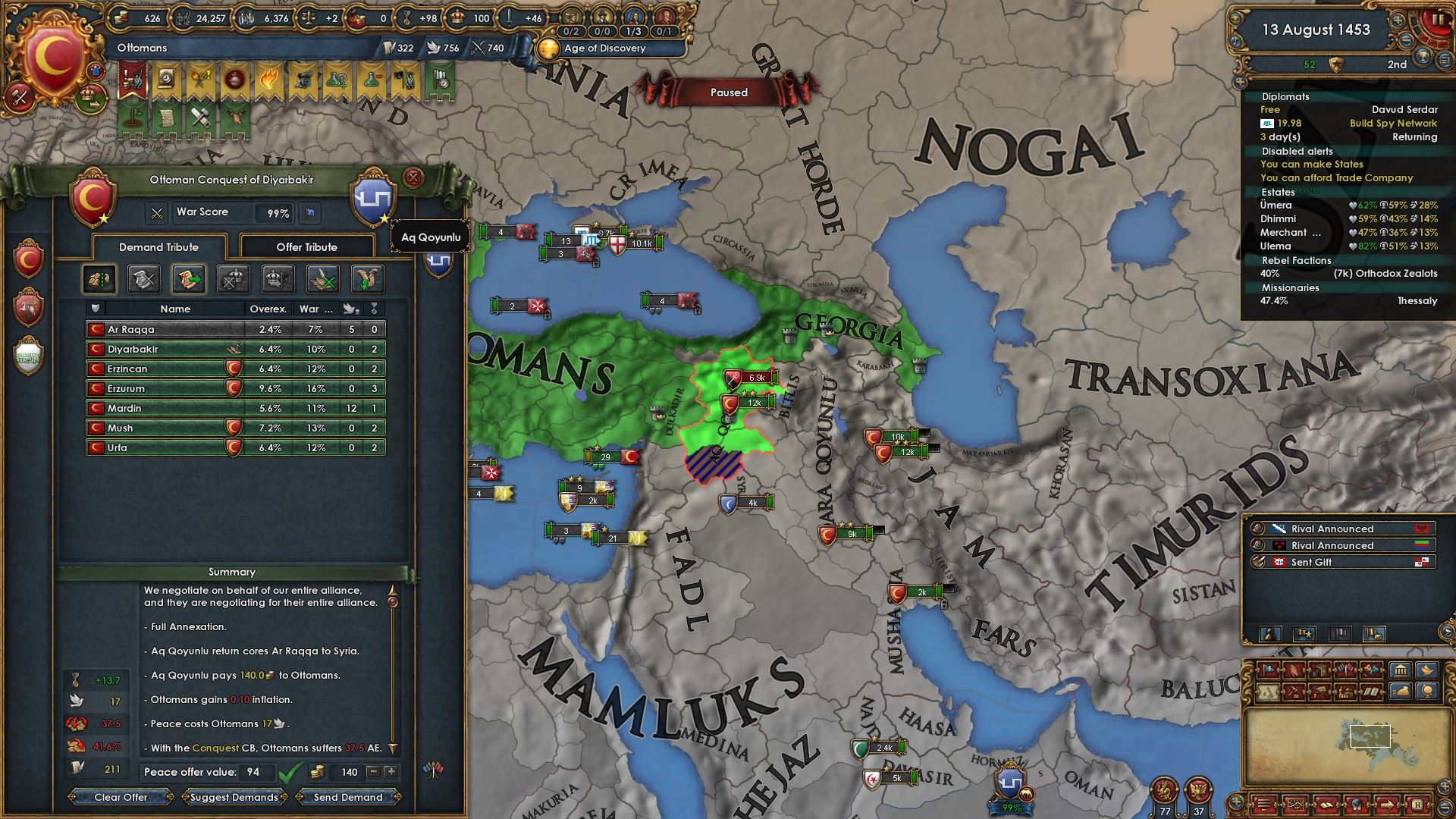 また、同盟国デュルカディルを外交属国化しています。
