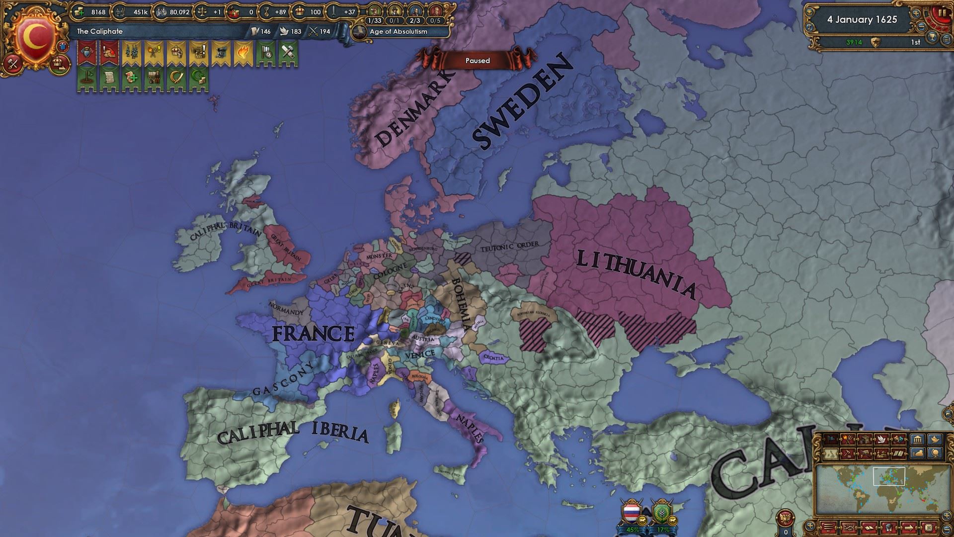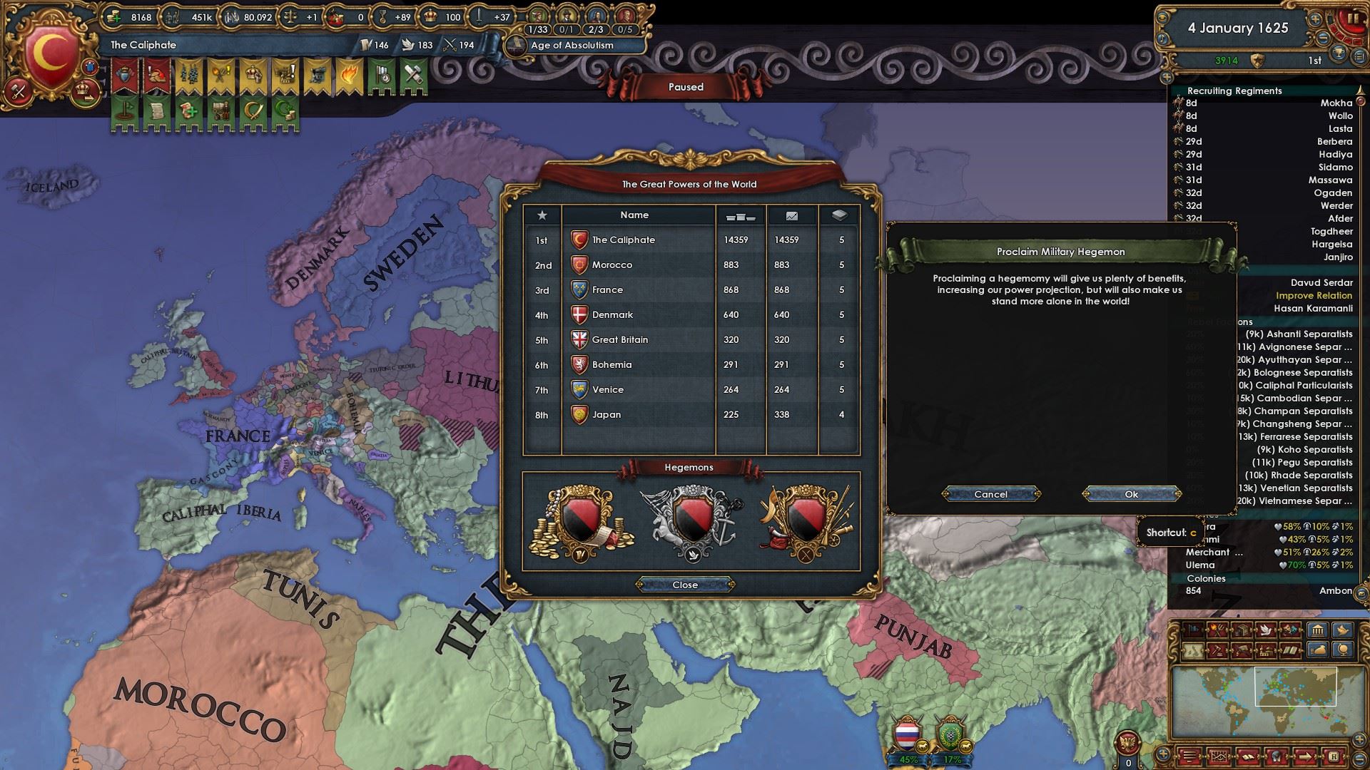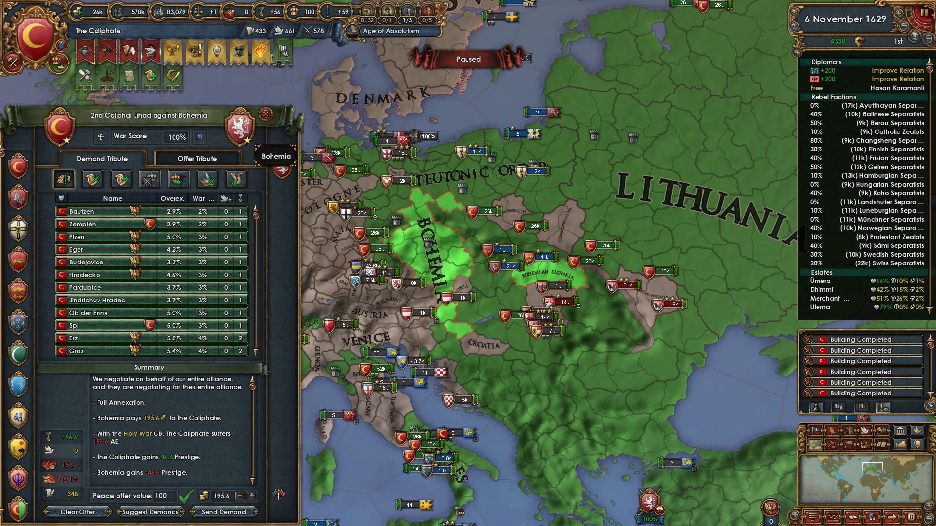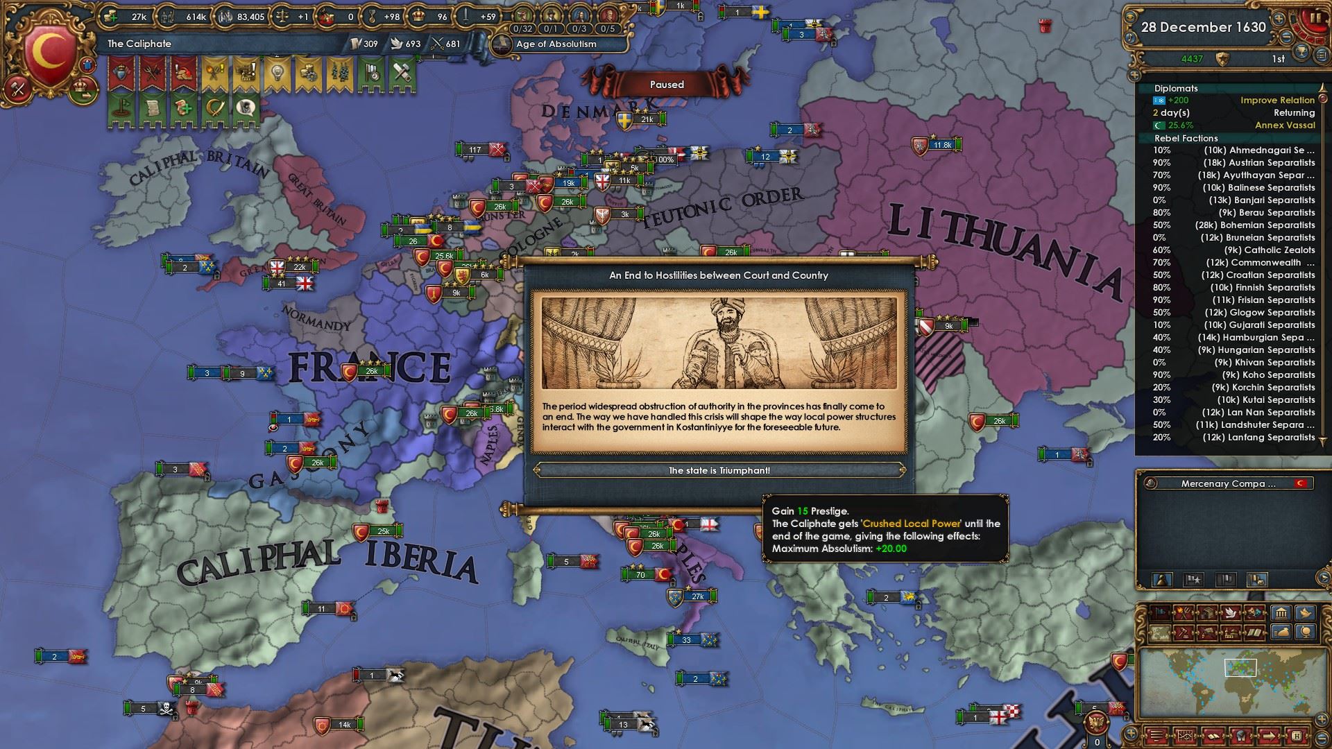 属国:ナジュド、カザフ、パンジャブ、ヴィジャヤナガル、ガスコーニュ、リトアニア、チュートン騎士団、明、ノルマンディー、ナポリ