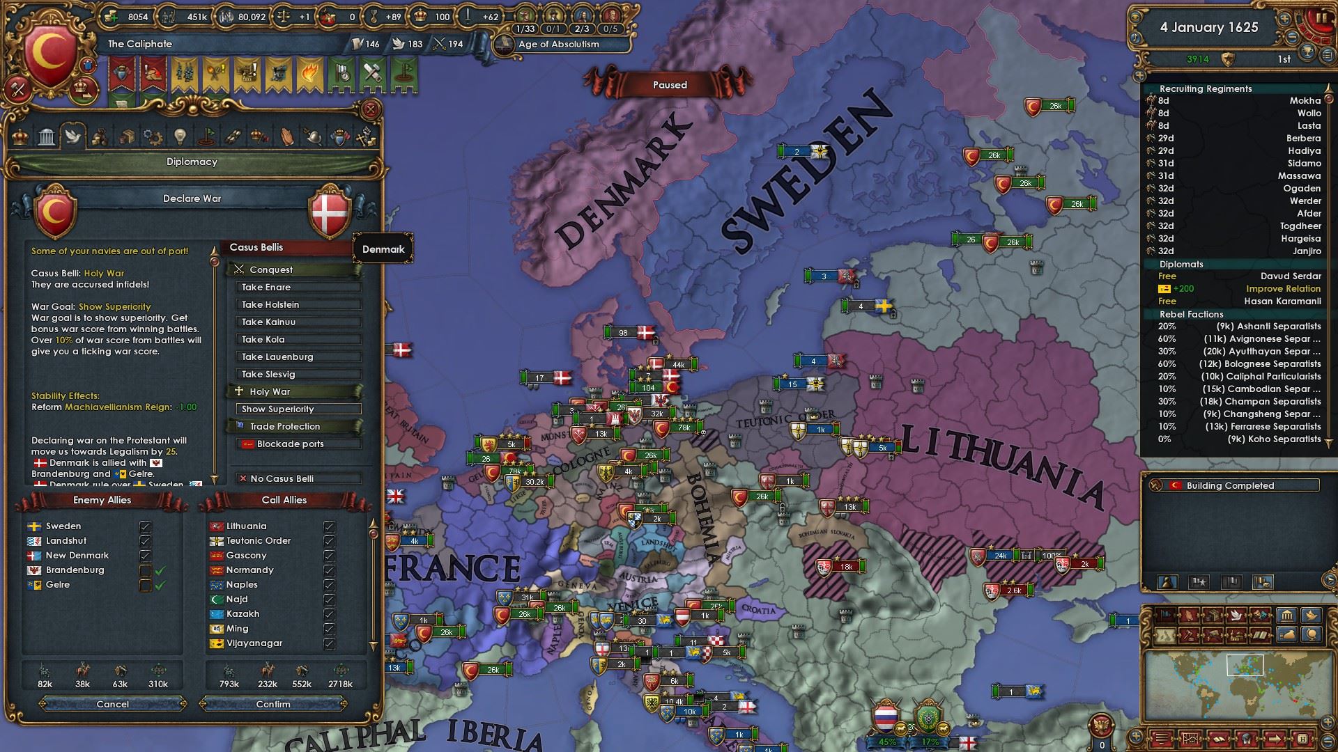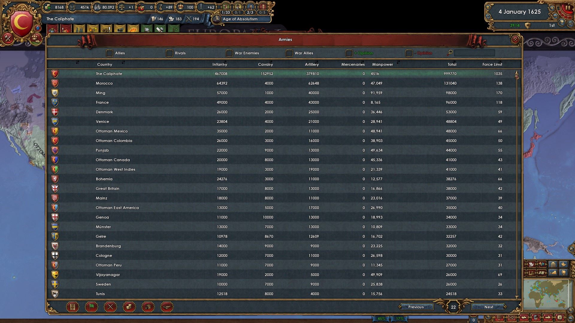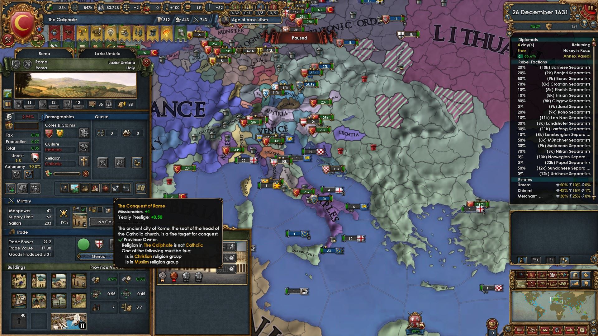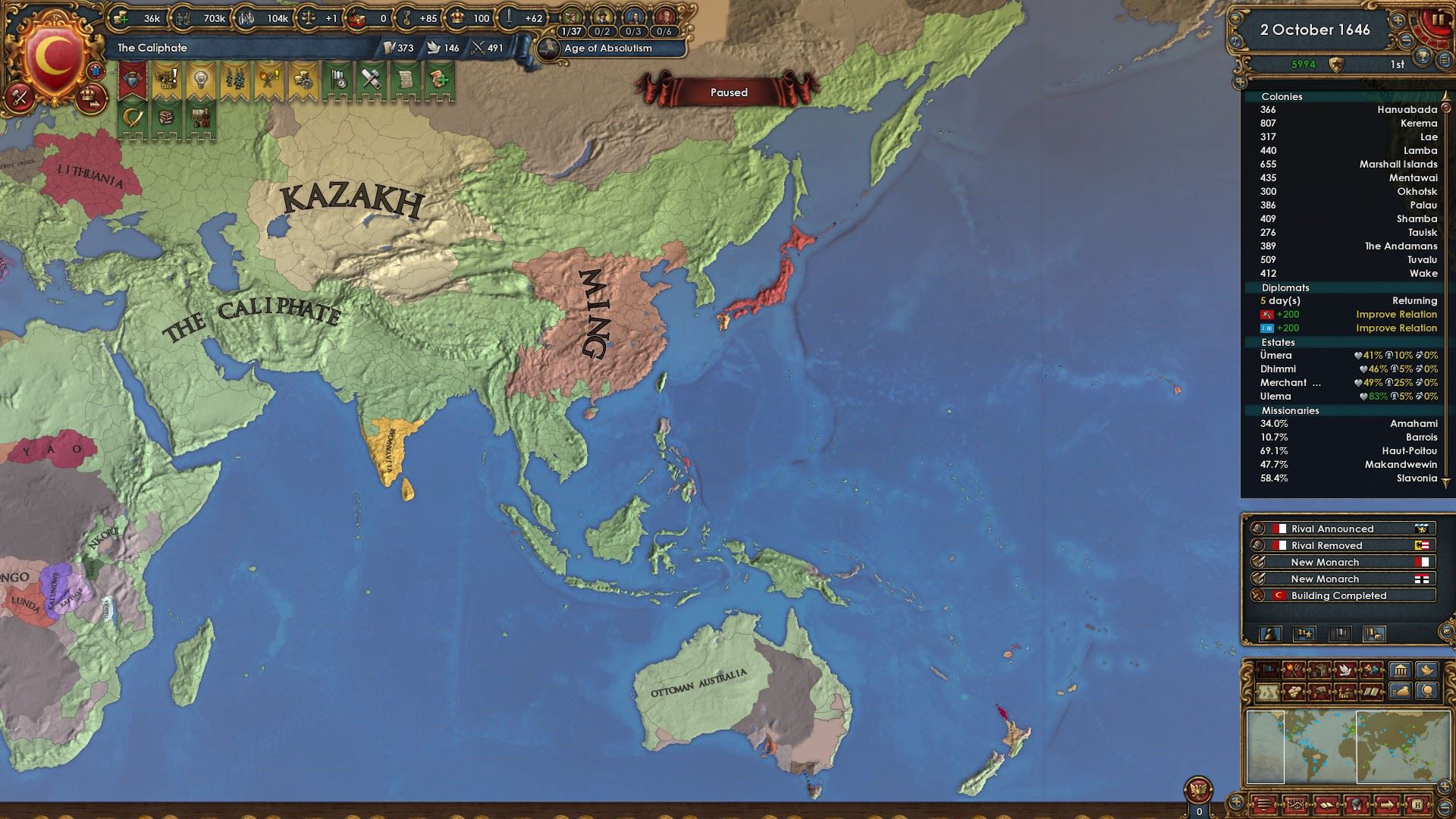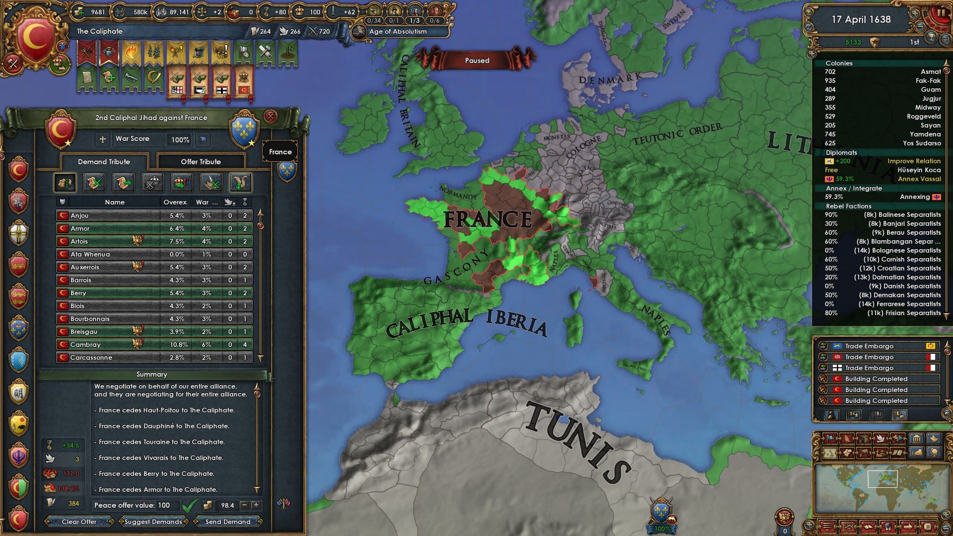 属国:ナジュド、カザフ、パンジャブ、ヴィジャヤナガル、ガスコーニュ、リトアニア、チュートン騎士団、明、ノルマンディー、ナポリ