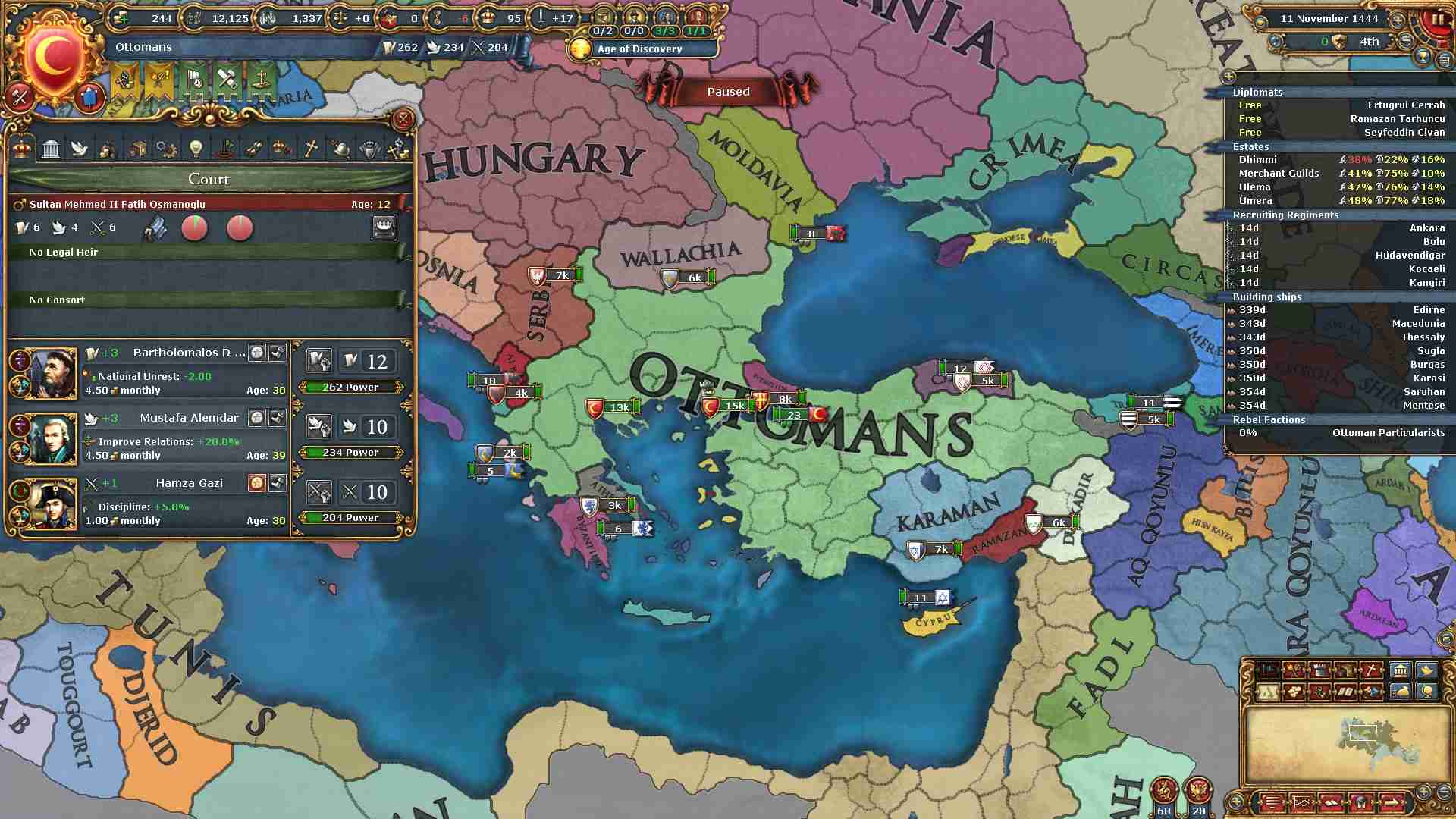・ 傭兵の歩兵を5部隊、ガレーを扶養限界まで生産。