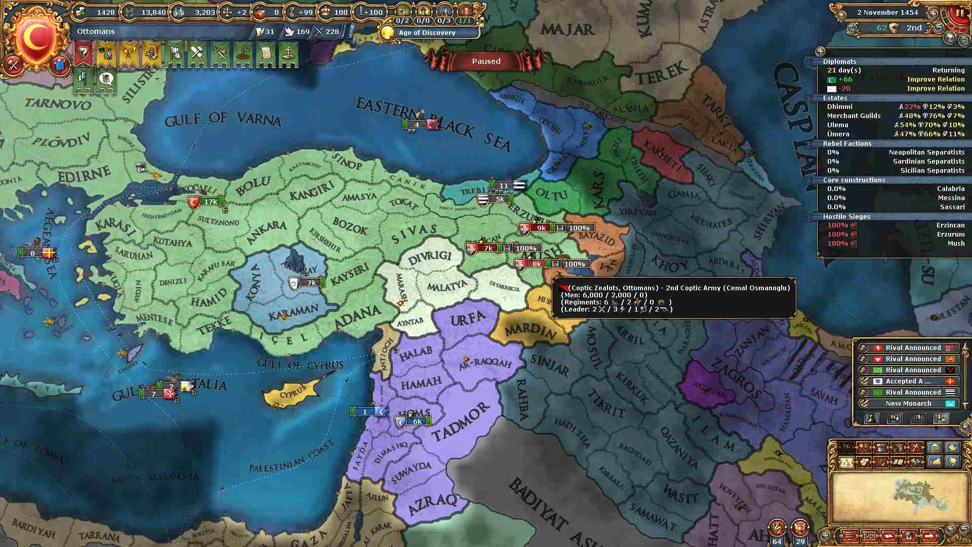 ・外交官はConstantinopleにクレーム付け、Dulkadirと同盟+関係改善