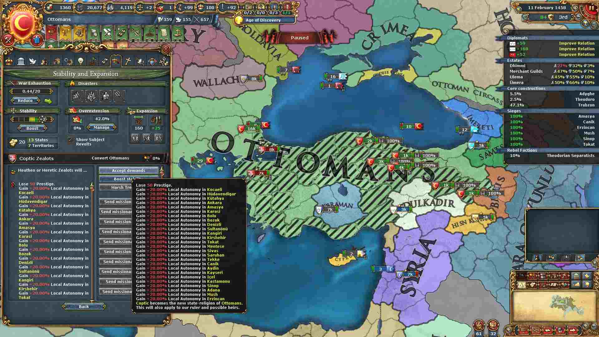 Dehmiの忠誠度を下げてからEstateをはがしコプトの反乱軍を発生させます。