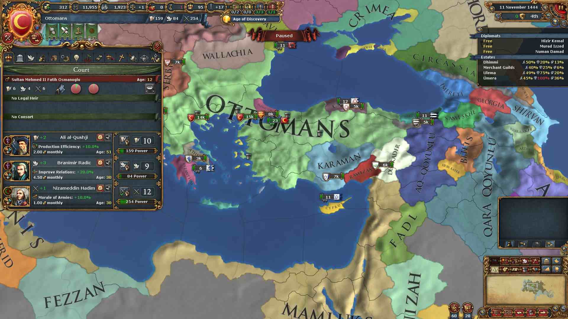 過去バージョンに比べて強化されたマムルークですが、出来るだけ早期に叩くのが得策です。初期君主の能力差から軍事技術が優位な状況を作れます。