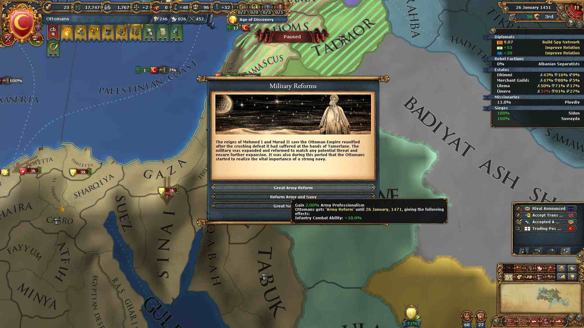 現にこの宣戦時にはオスマンの軍事技術4に対してマムルークはいまだ3のままです。