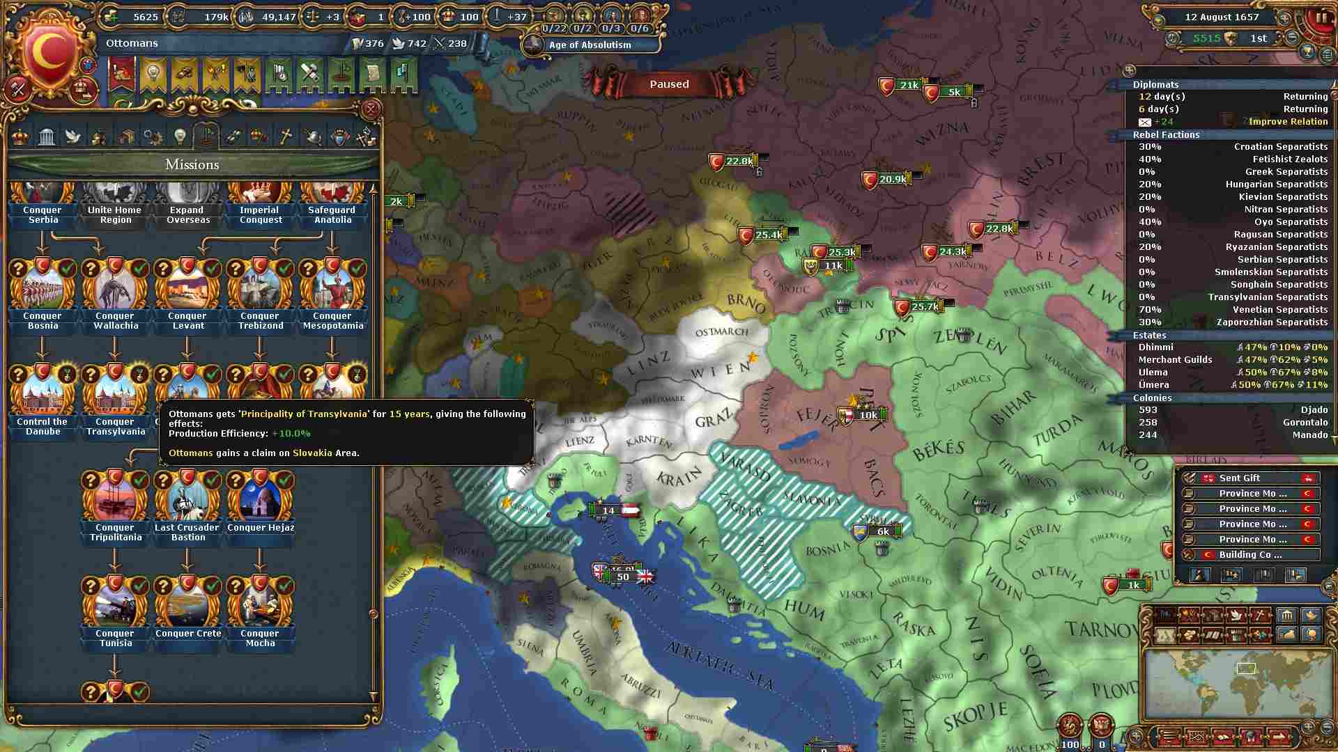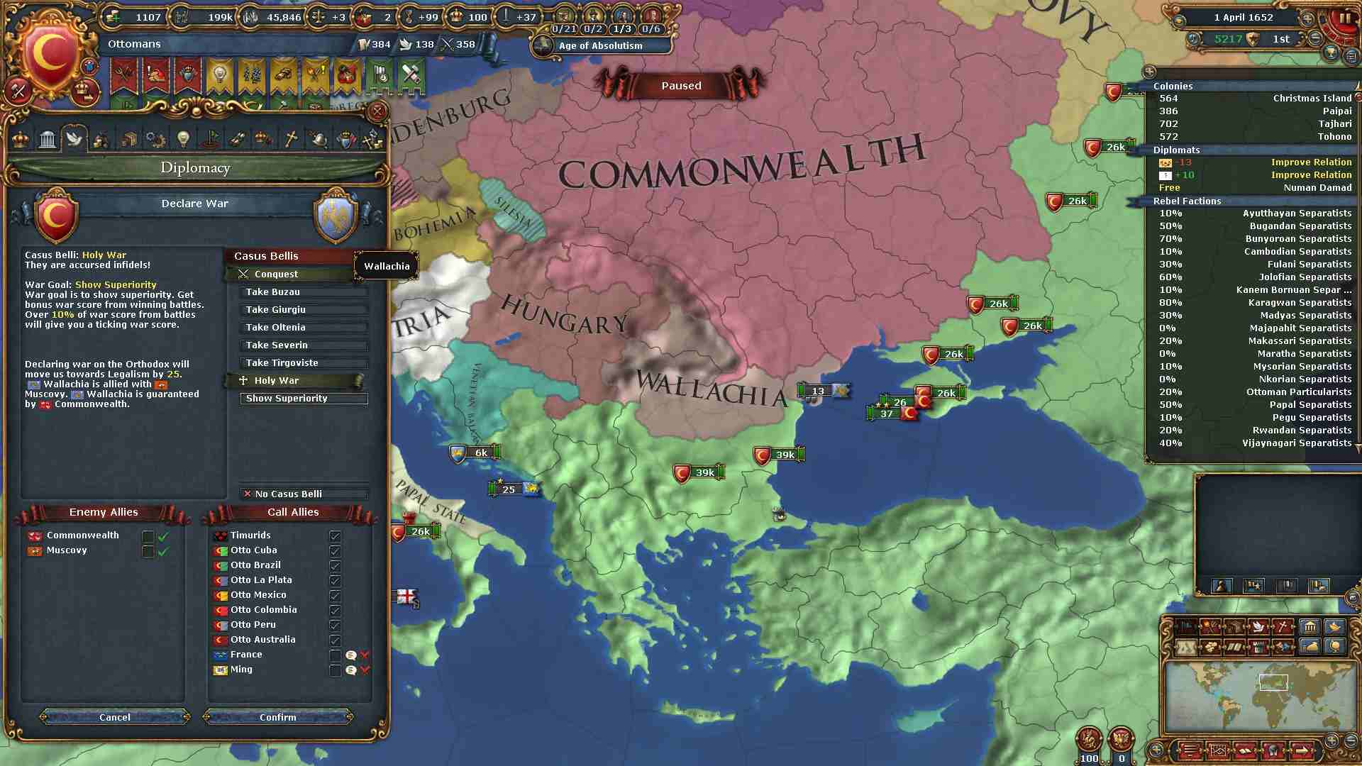 まずは東欧侵略のミッショツリーを進めるためにワラキアを攻めます。