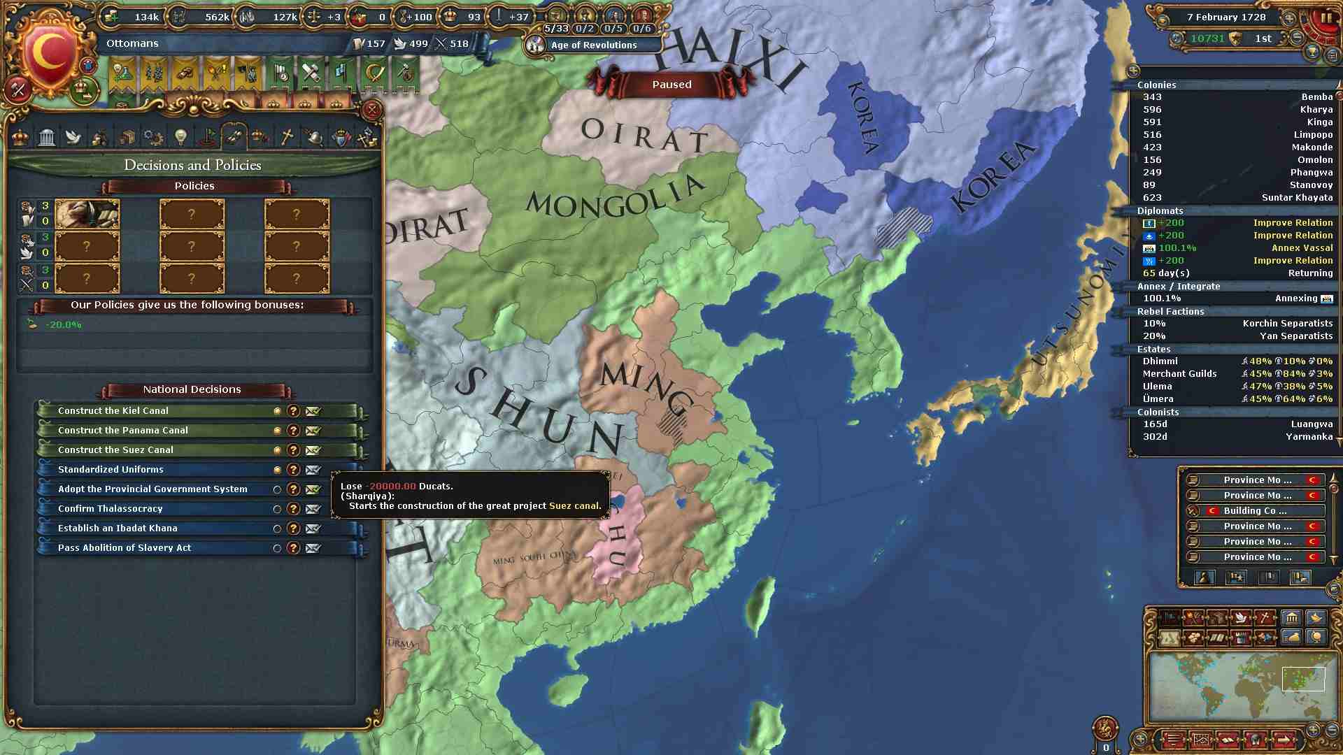 資金も余っているので各運河の建設を始めました。