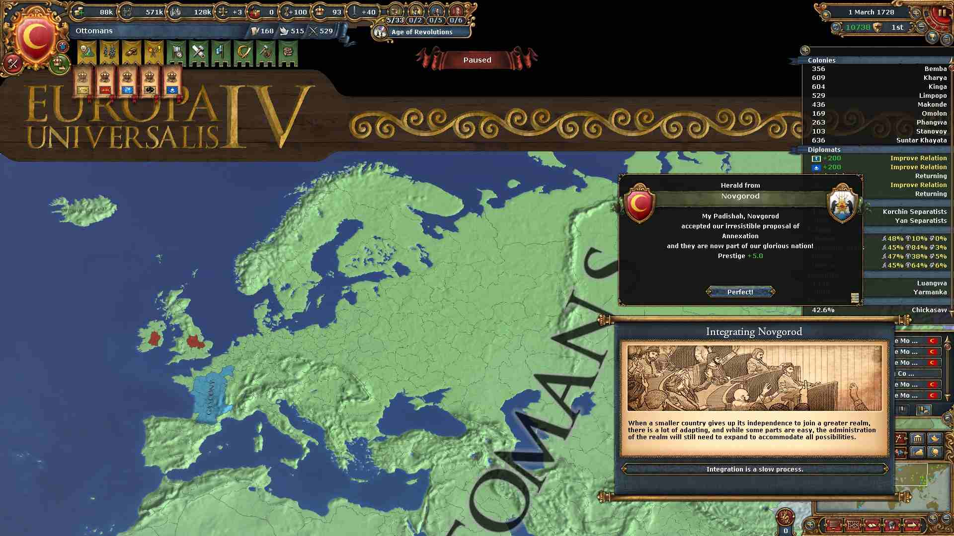 イギリスを完全併合し欧州の完全制覇が成りました。