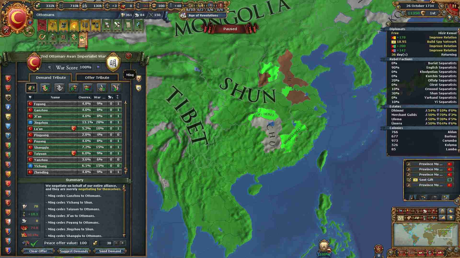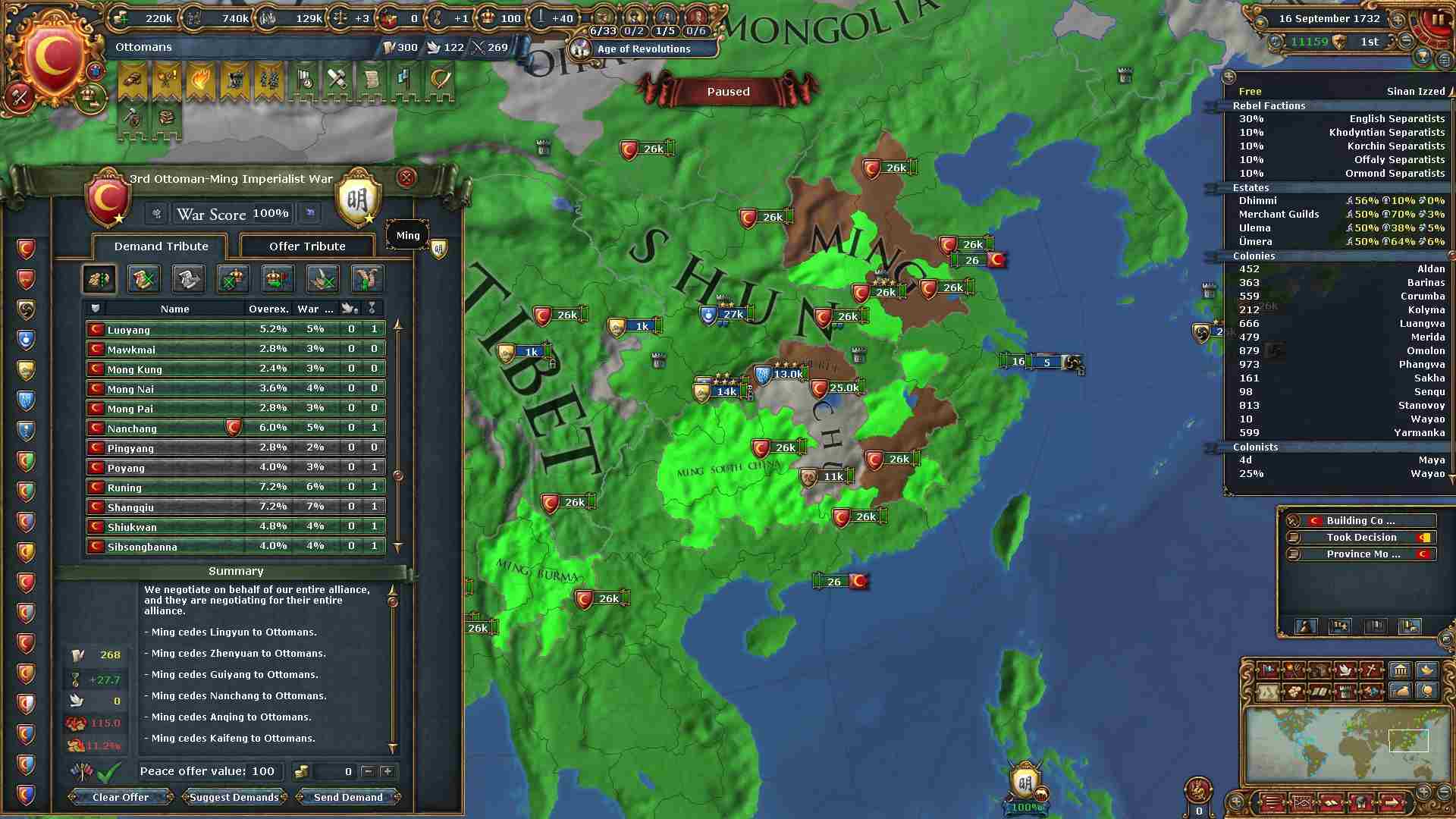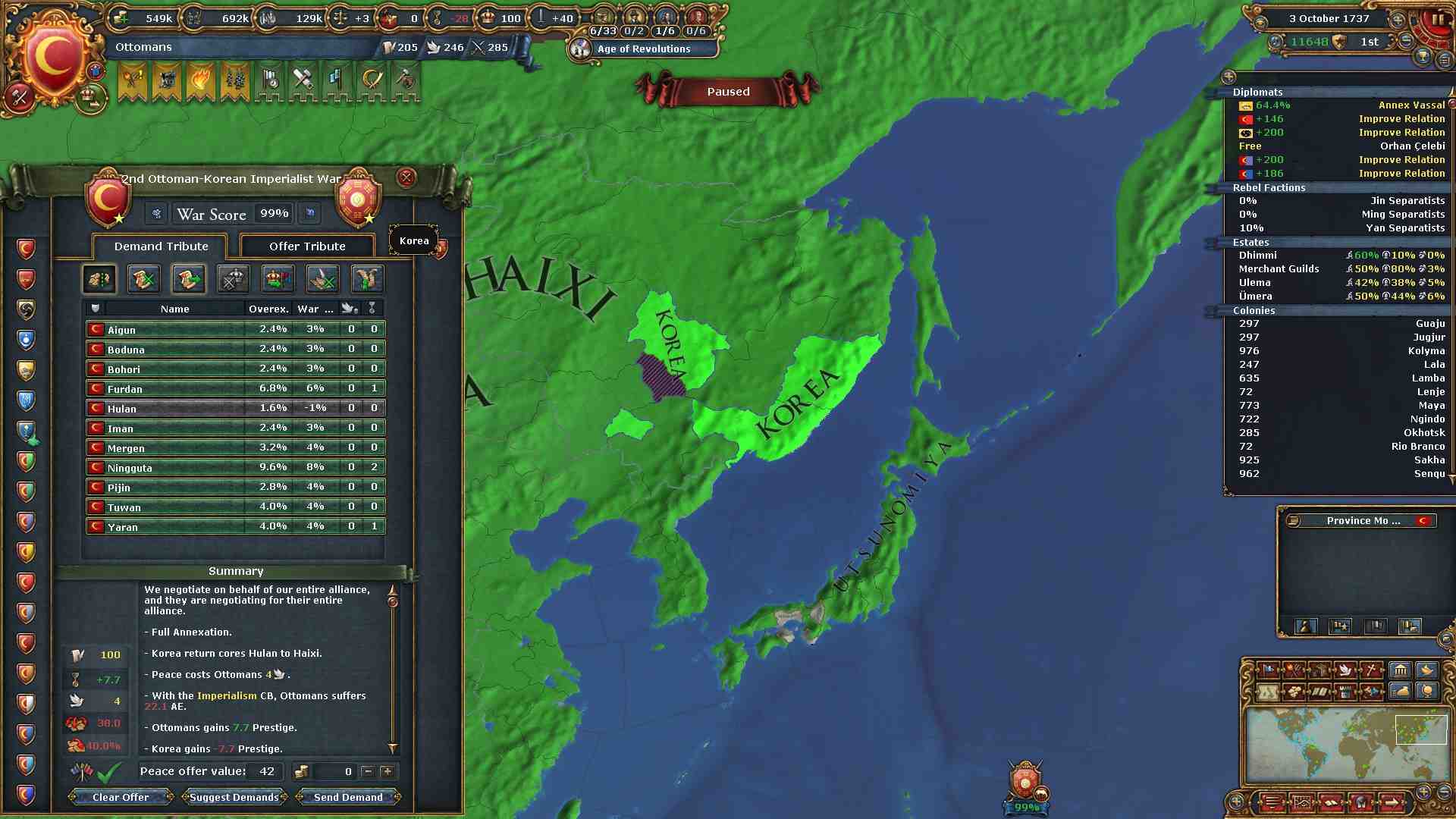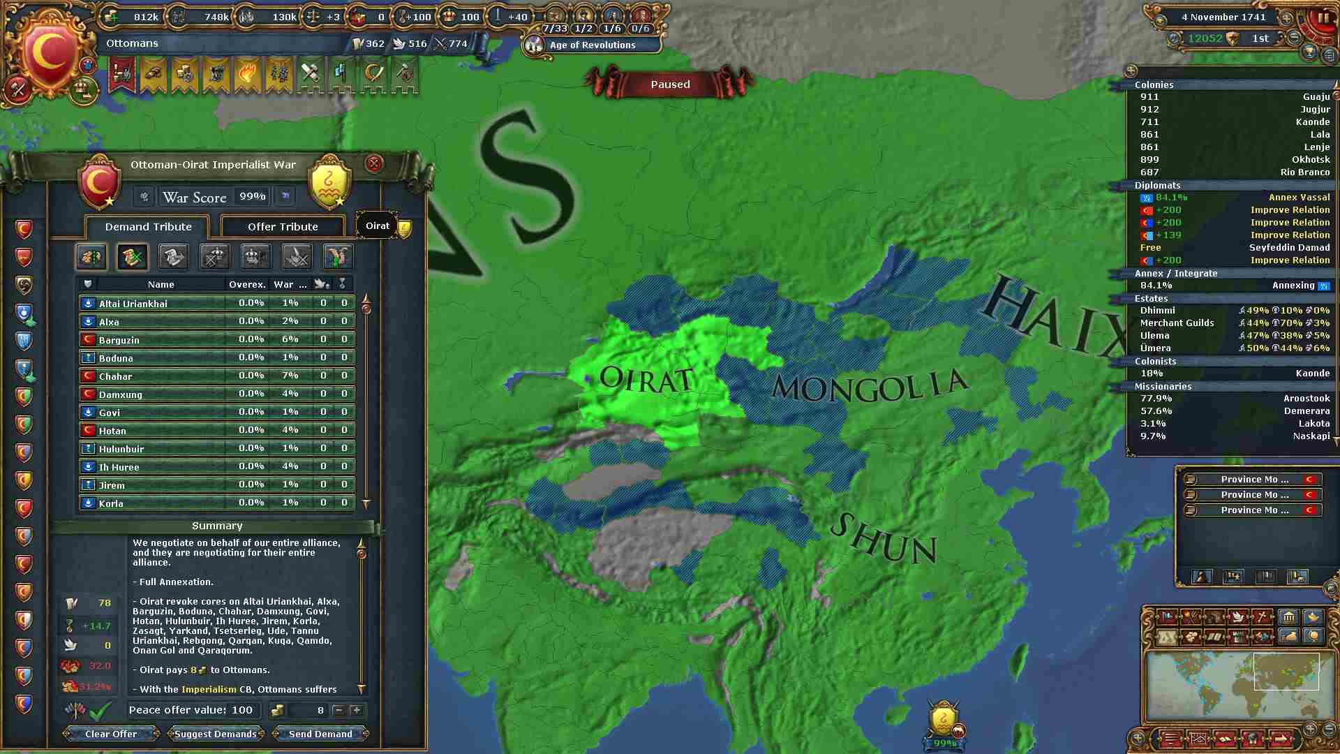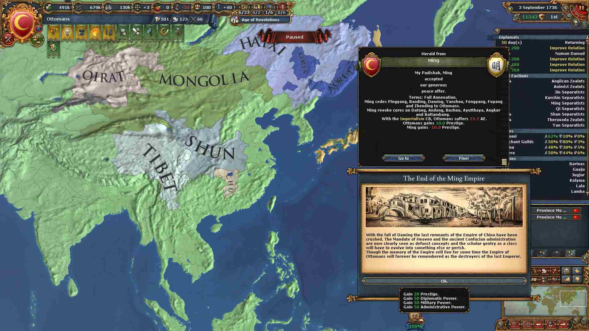 全土を併合し、世界征服を達成しました。