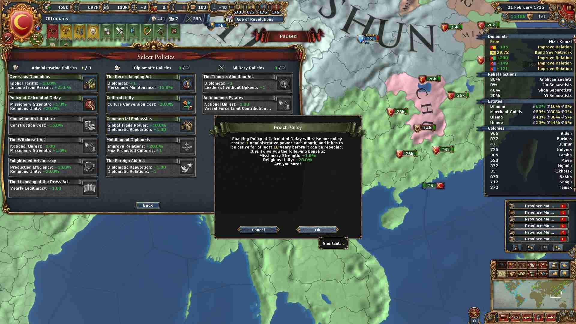 外交アイデアをコンプリートしたので改宗強度アップのポリシーが解放されました。