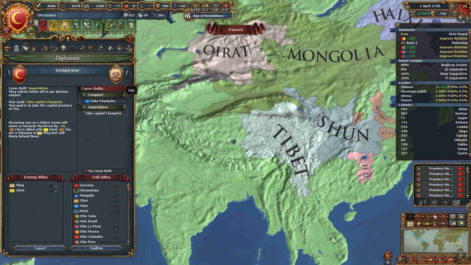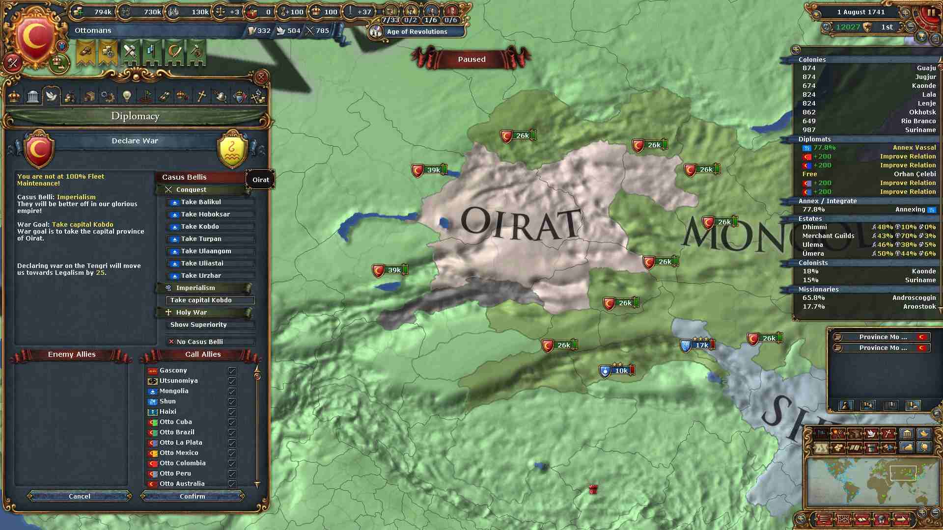 最後に残った敵国であるオイラトに宣戦布告。