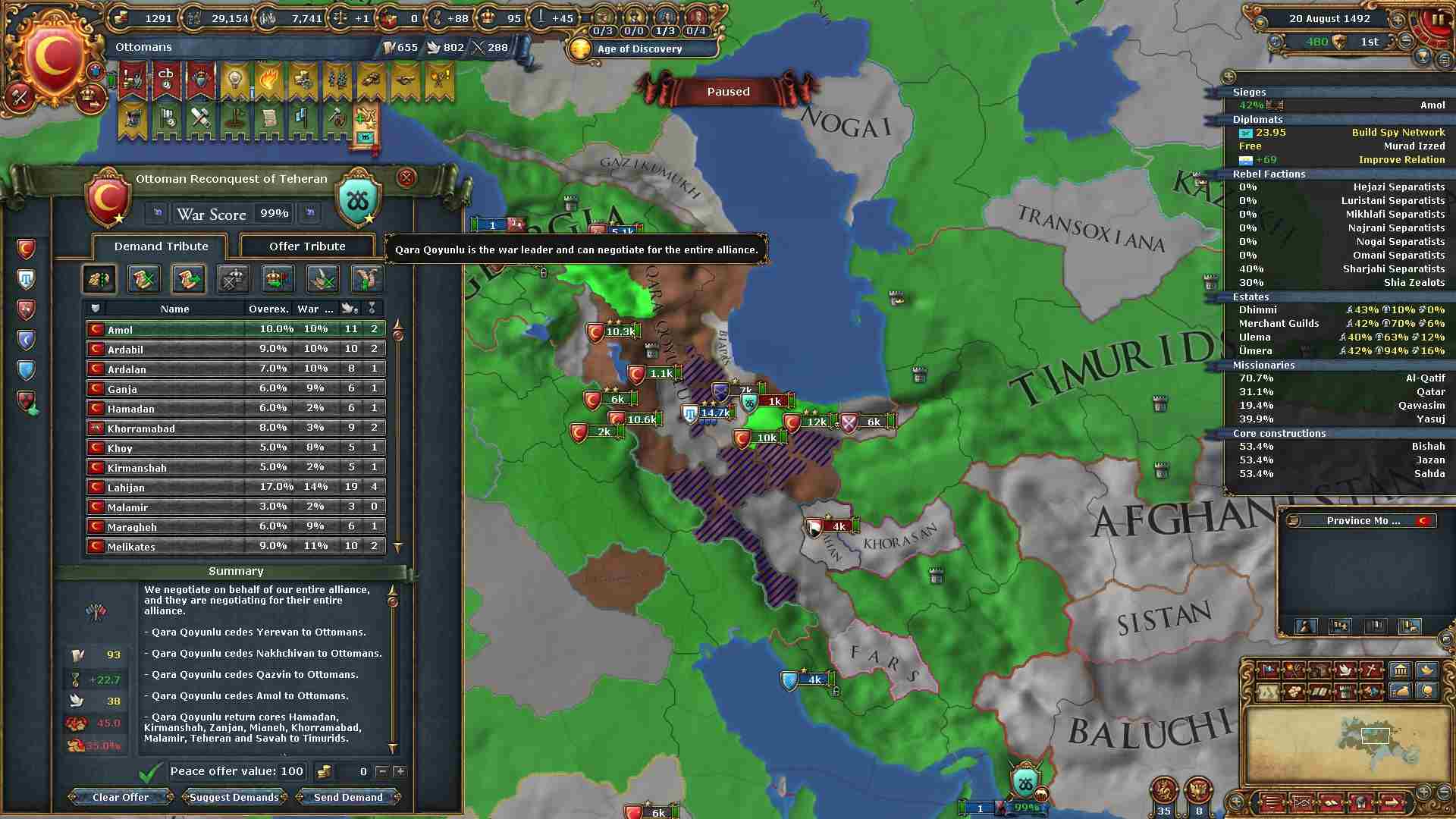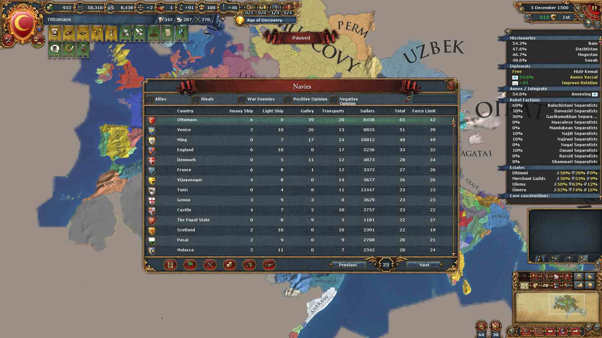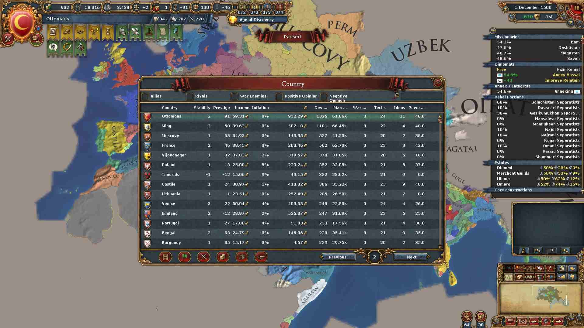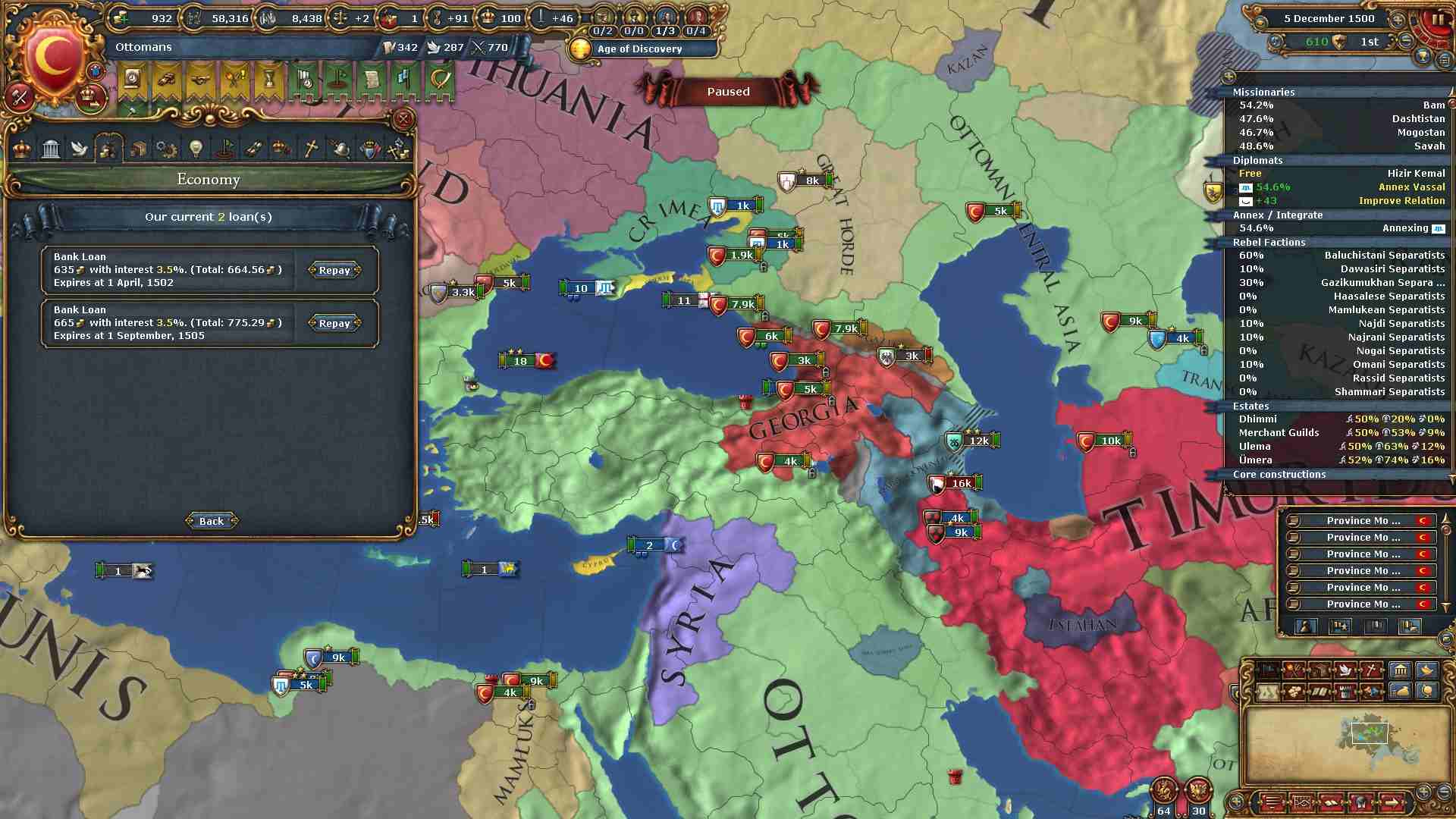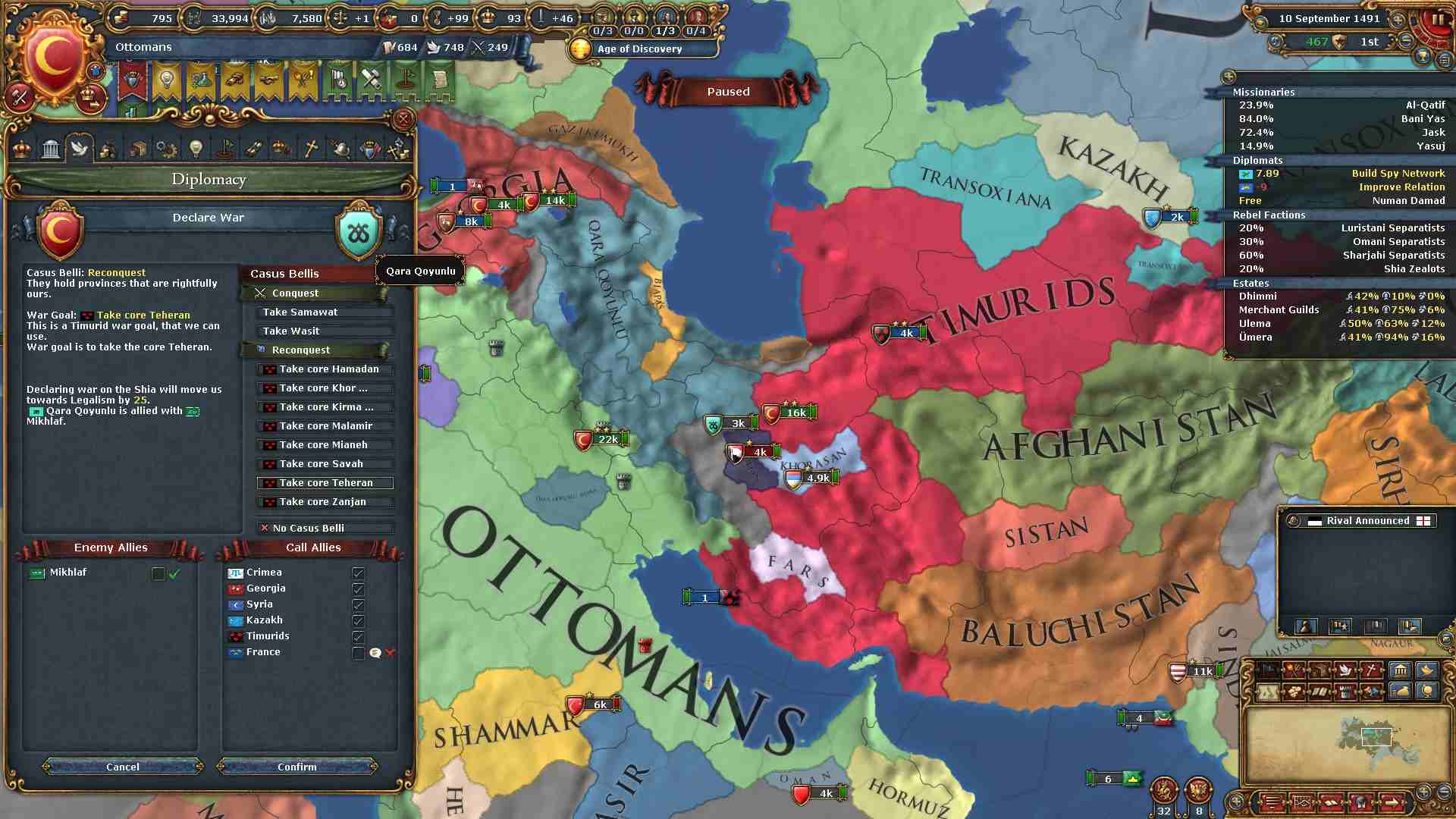 属国併合をすると外交評判が10年間-3されるので、前回の属国併合から10年経過してそのバフが取れるタイミングを見計らって次の属国併合を計画しています。