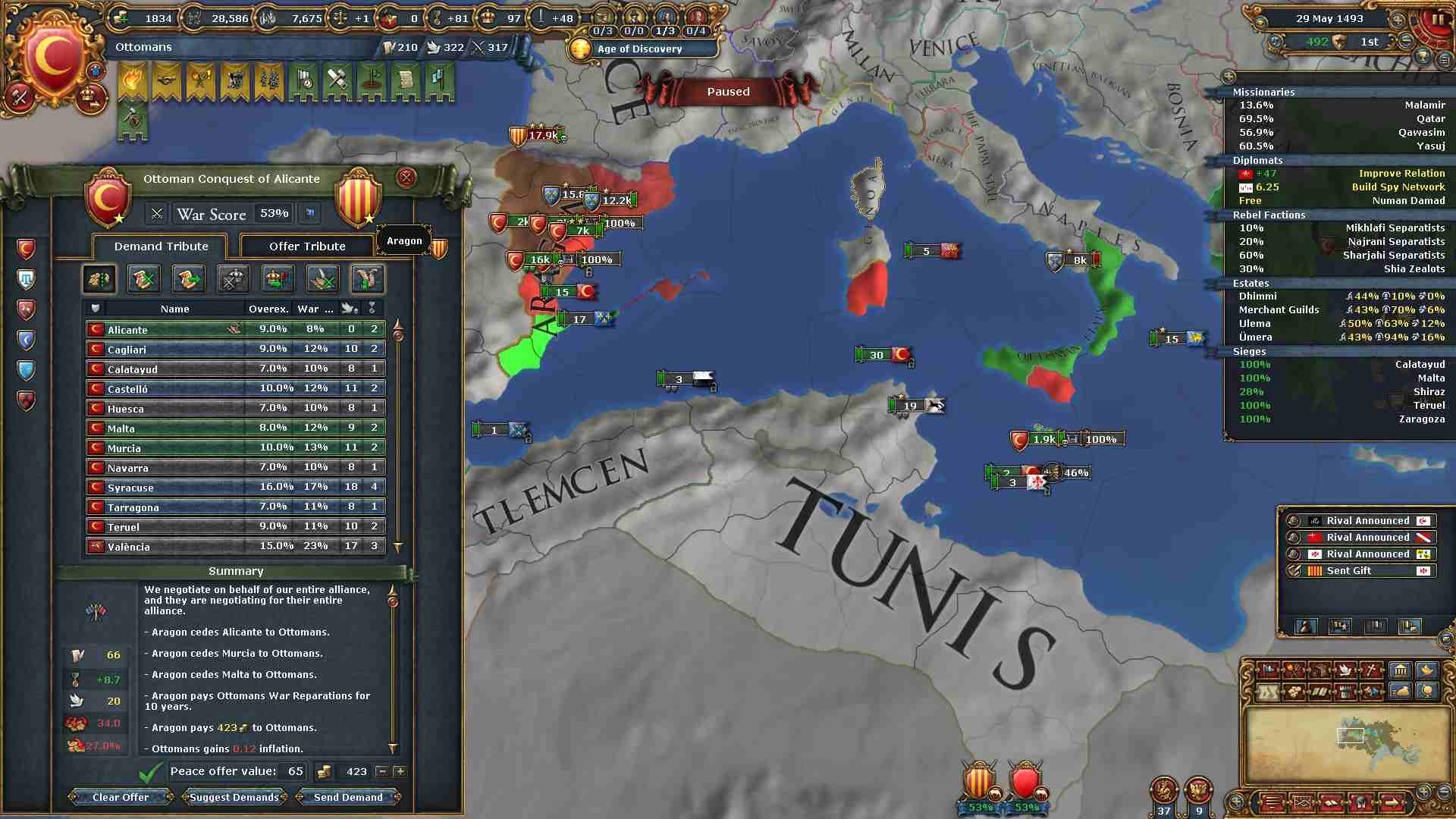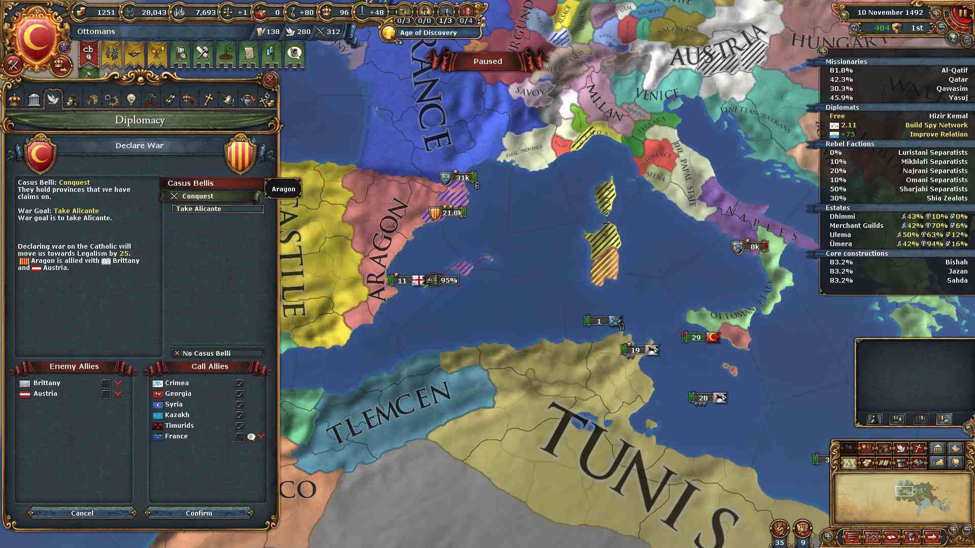 残念ながら停戦期間の切れたフランスによってアラゴンが攻められていますがお蔭で、アラゴンの同盟国が参戦してきません。