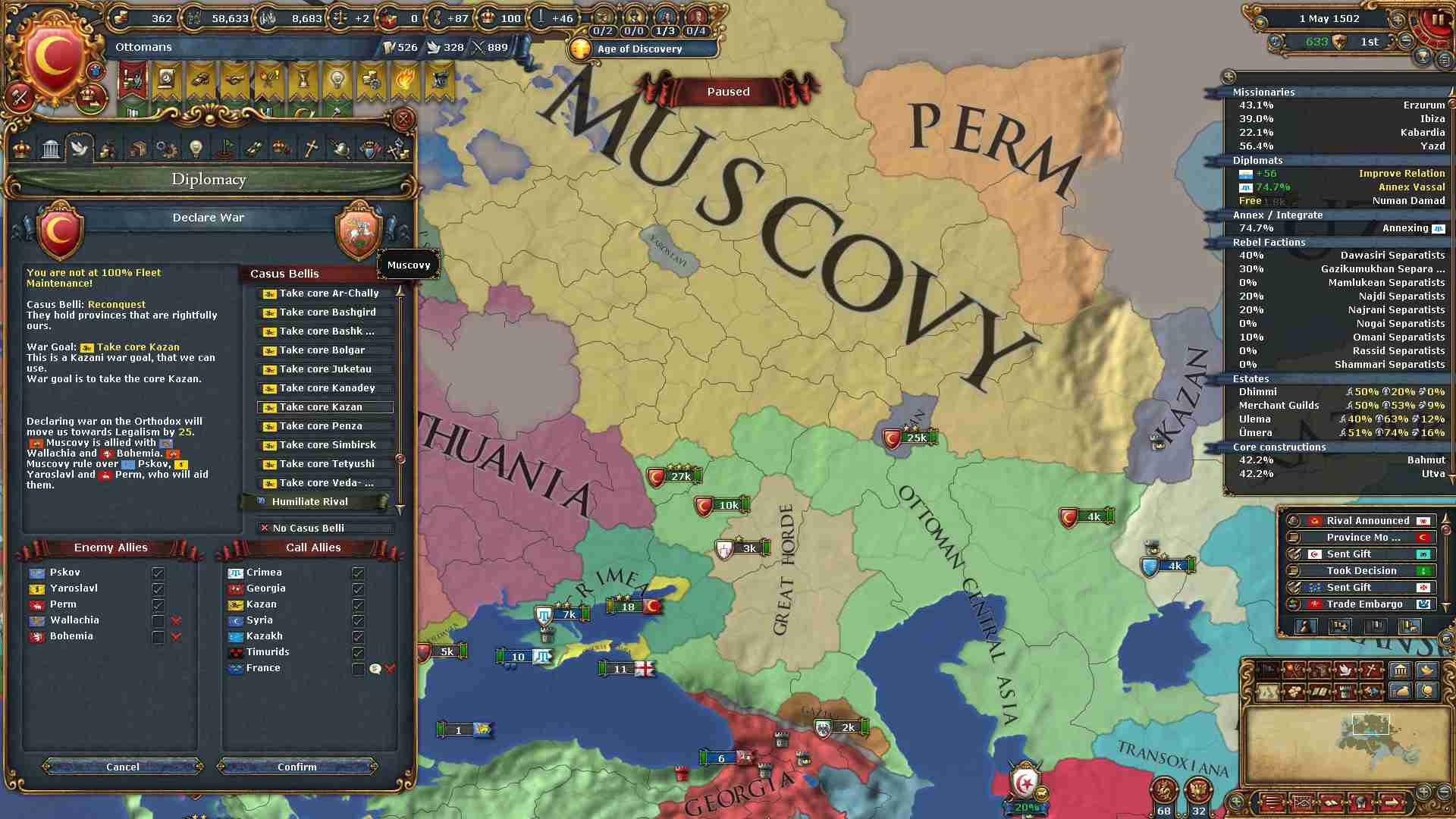 属国カザンのコア州を返還すべくモスクワに宣戦布告