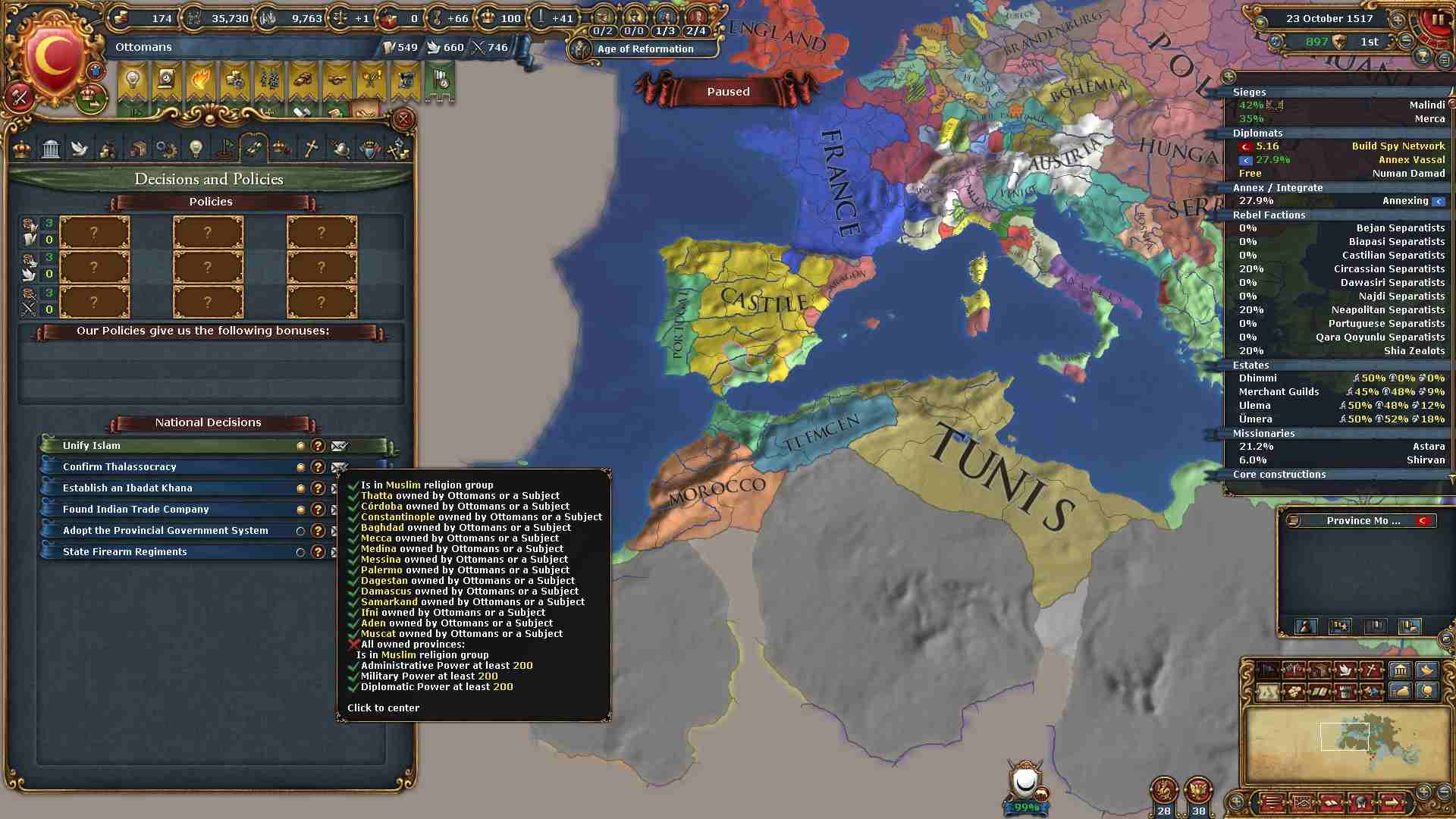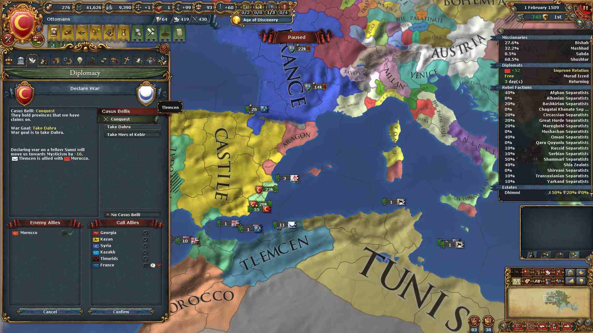 「Unify Islam」に必要な州イフニを得る為に、トレムセンに宣戦してモロッコを釣り出す。