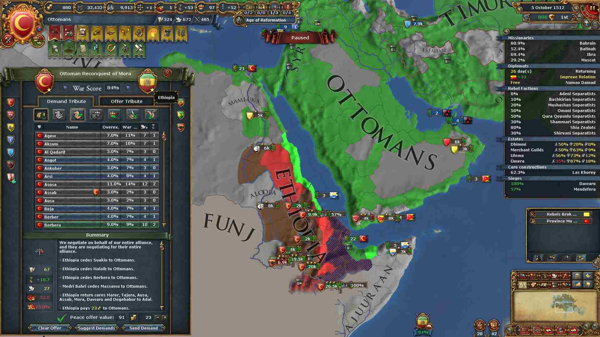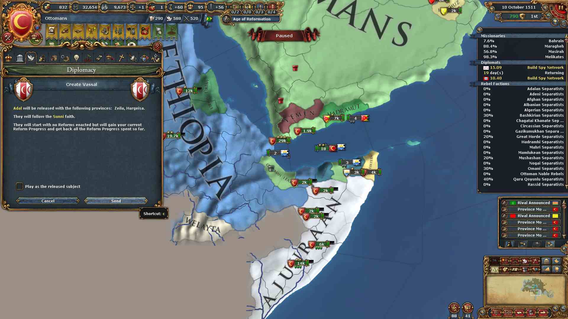 「Unify Islam」に必要な州アデンも頂いた上で属国アダルを作成。