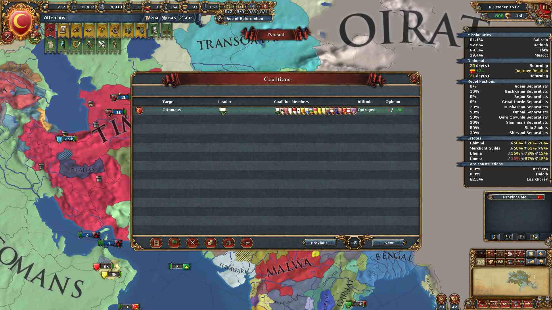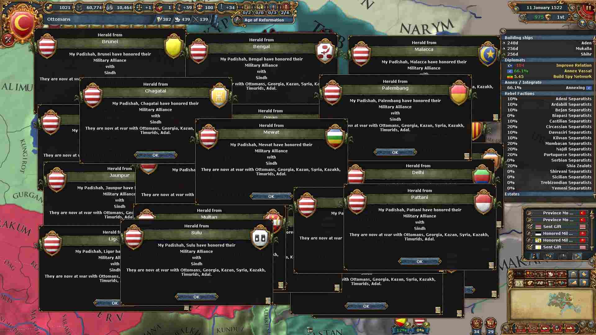 インド及びまだ手の届かない東南アジアのスンニ国家が結託し、対オスマン包囲網を組まれてしまいました。
