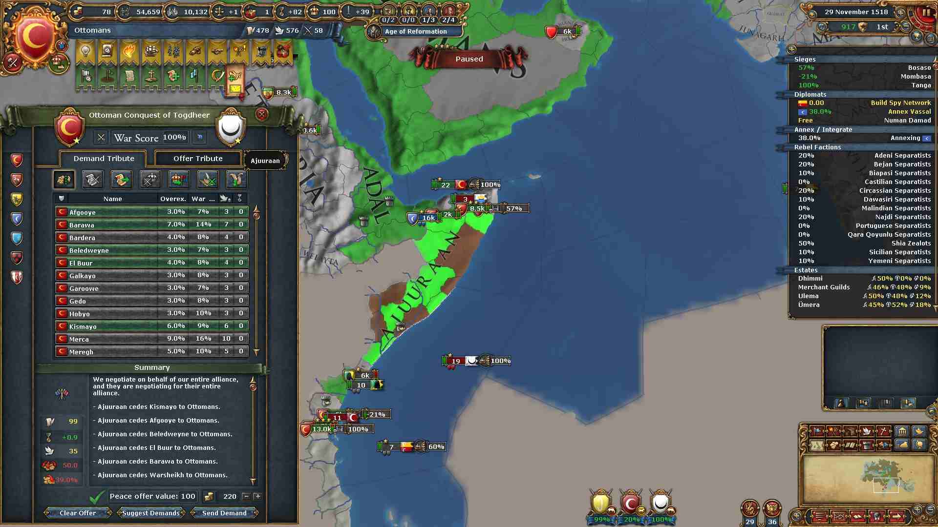 ポルトガル戦の最中ですが包囲網にアジュラーンを参加させないように宣戦布告しました。そのまま一気にアフリカを南下していきます。