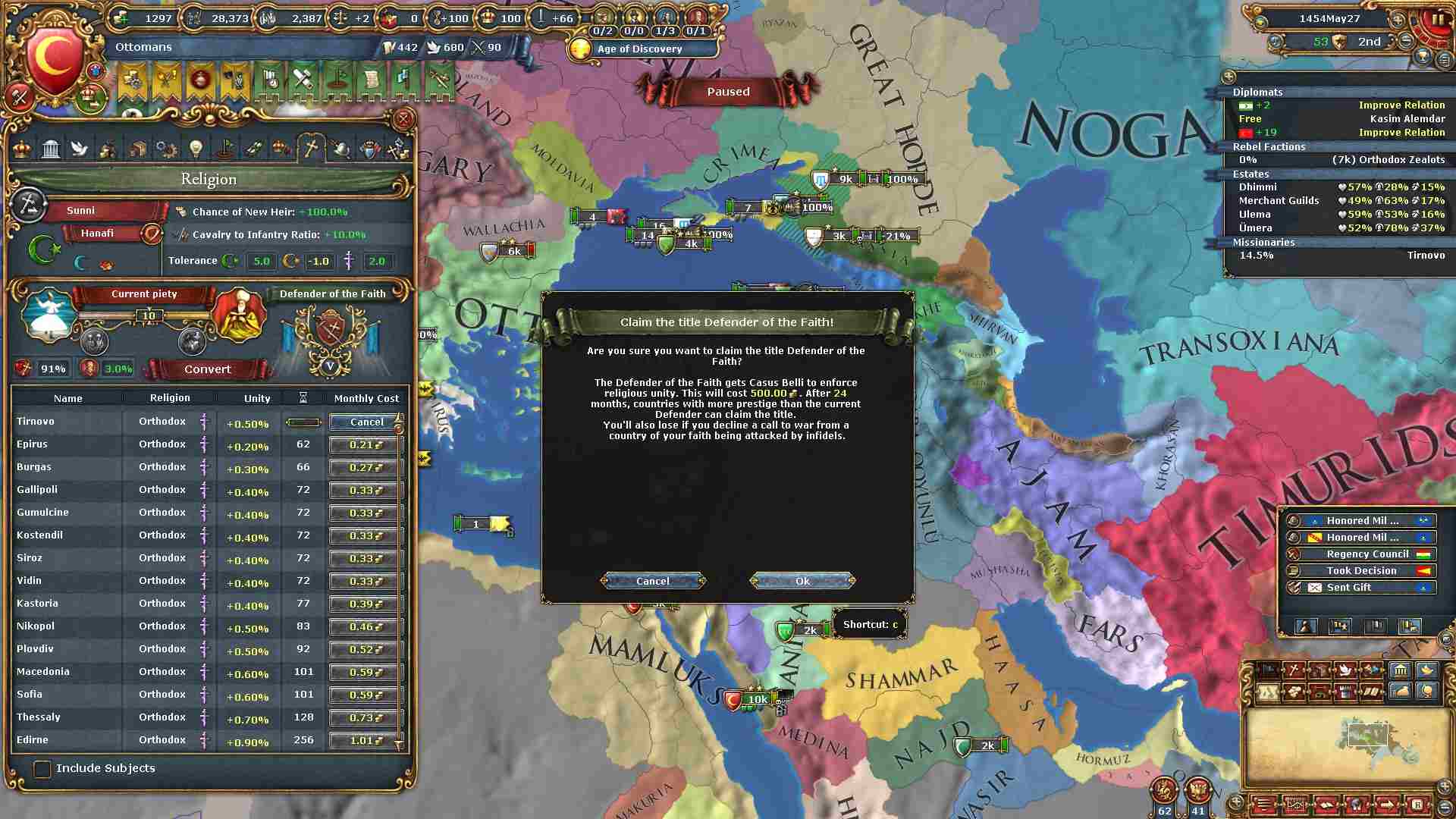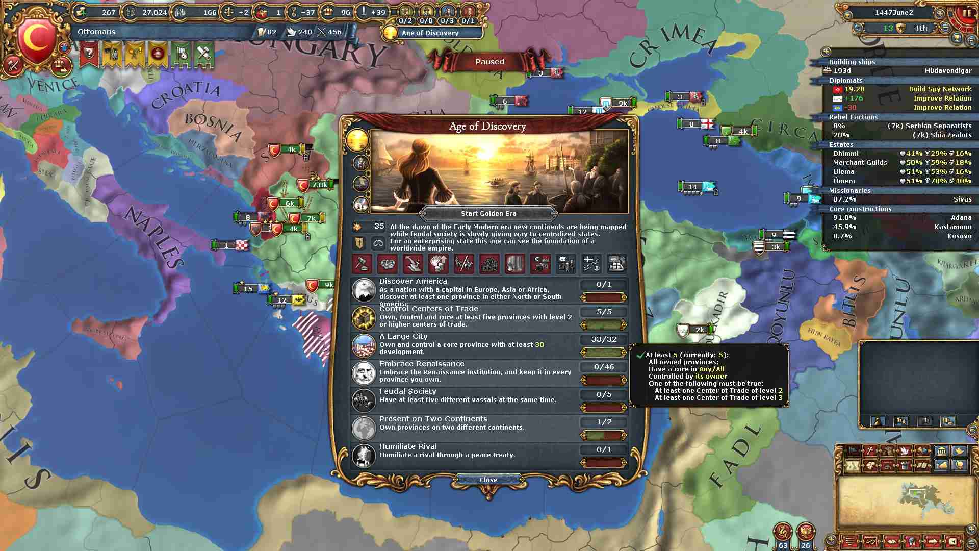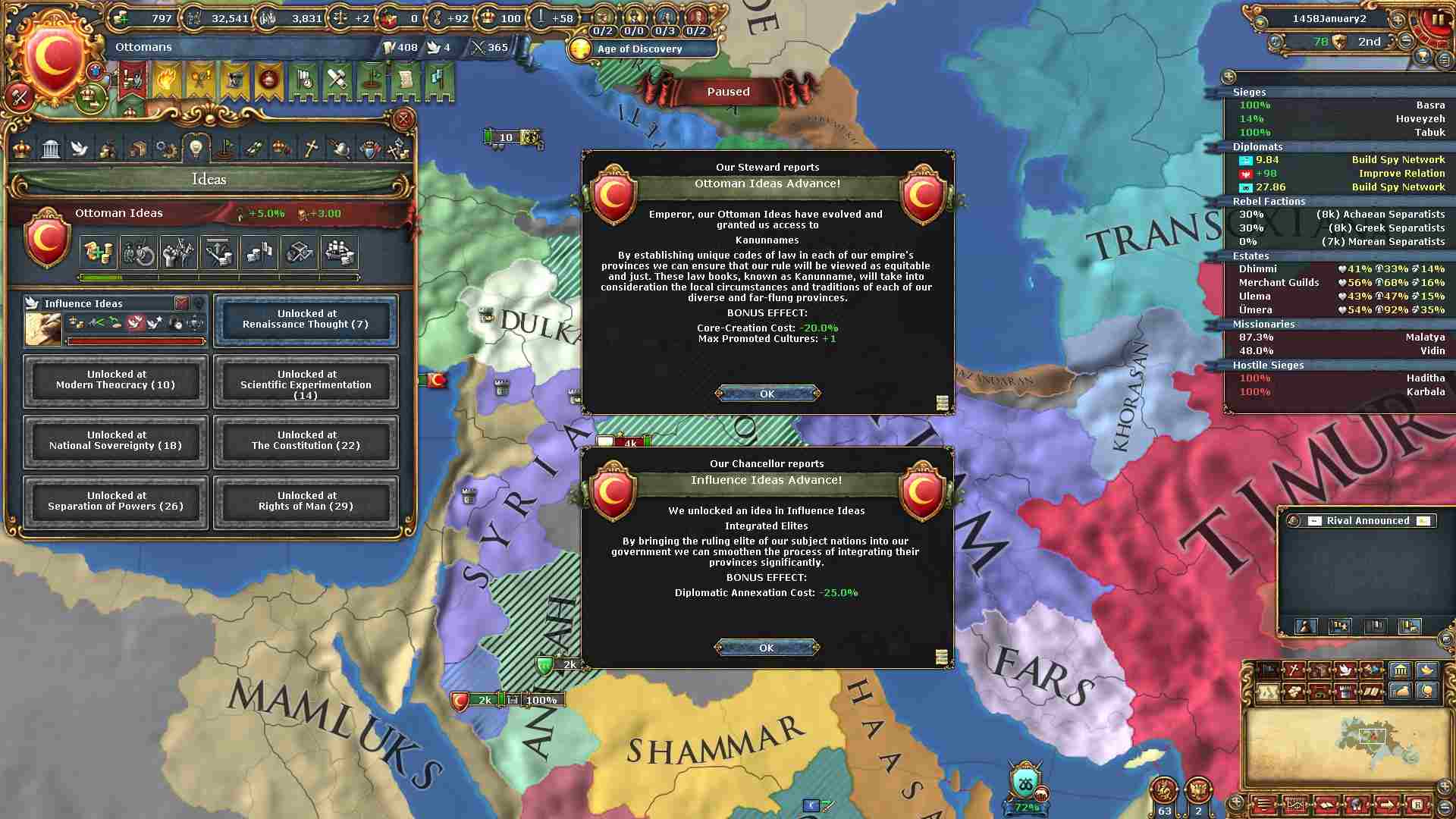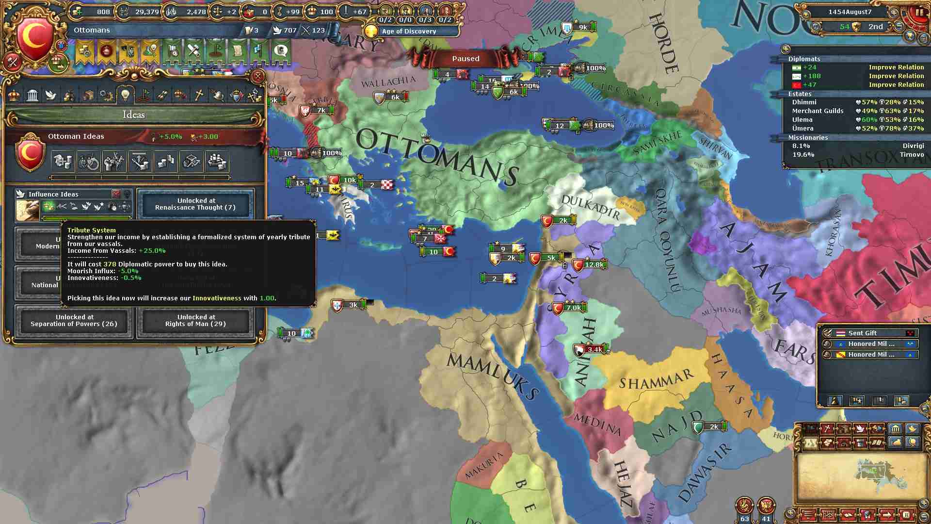 権勢アイデアの6つ目を獲得し、オスマンの2番目のナショナルアイデアを得ました。