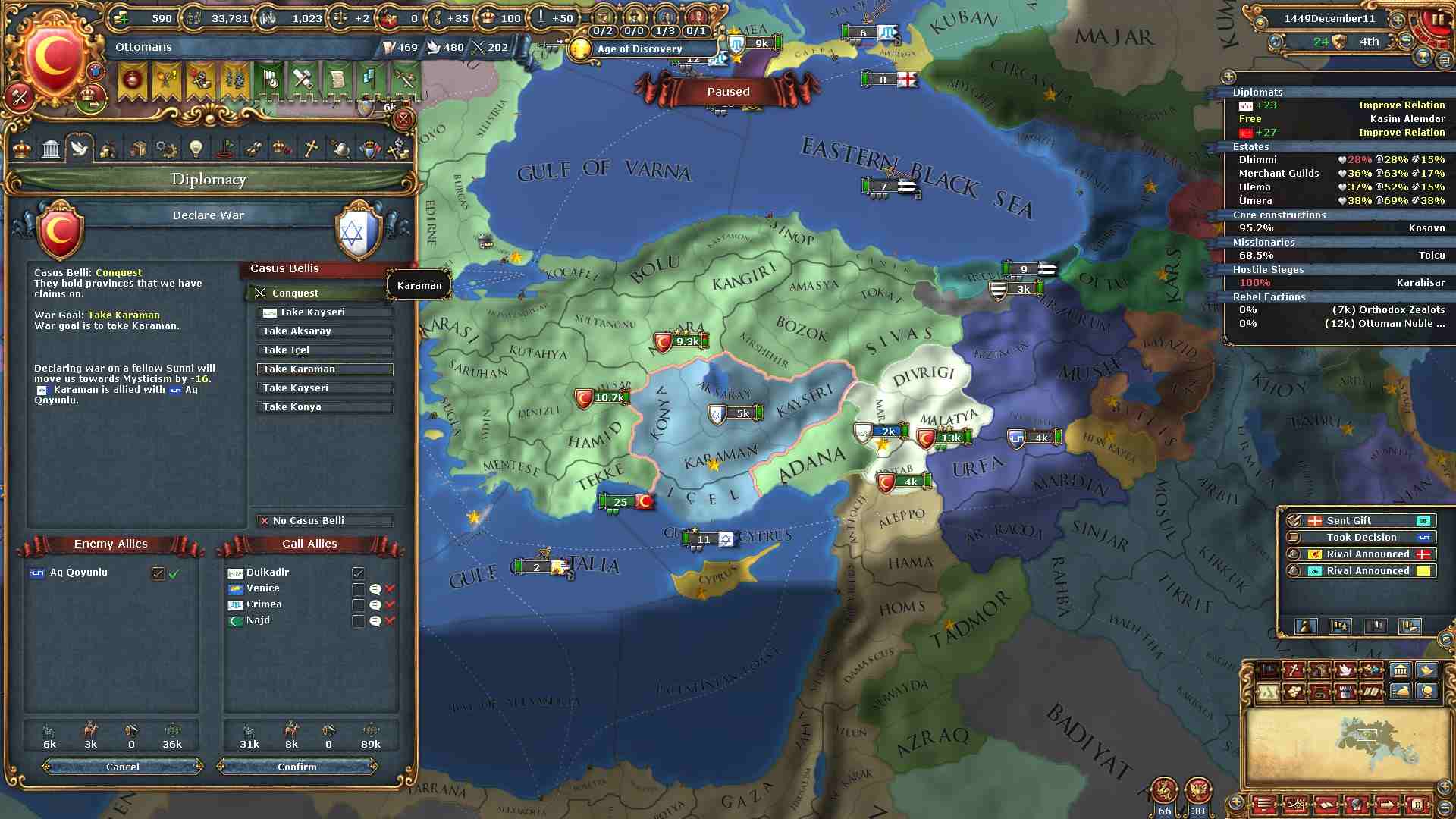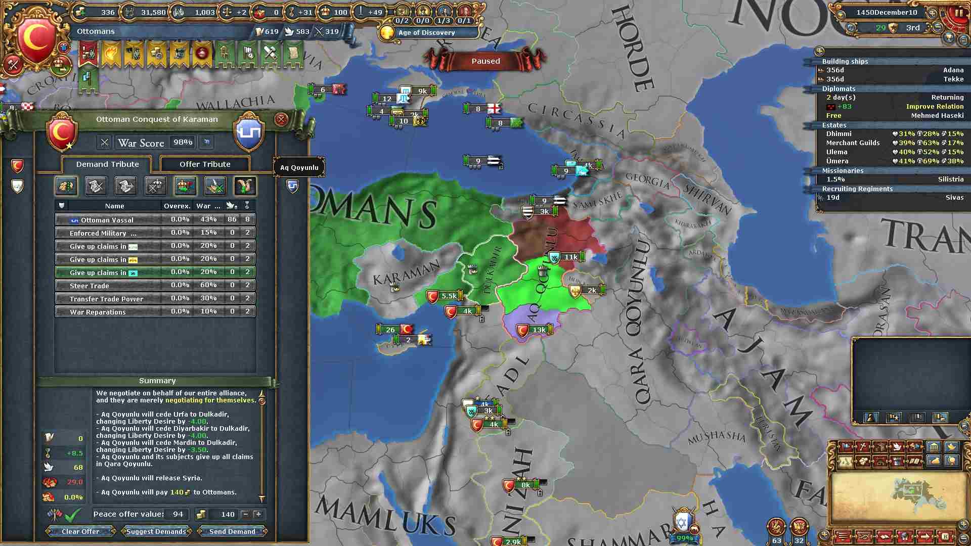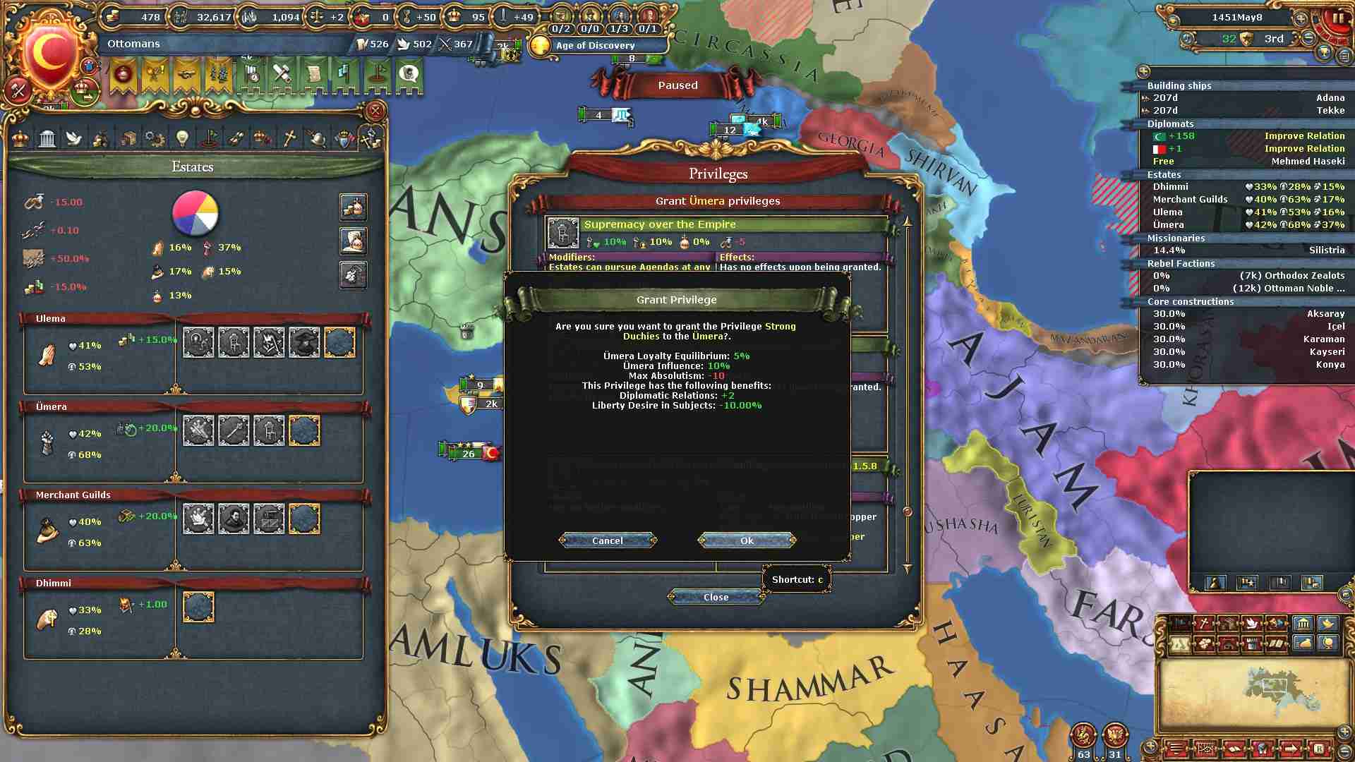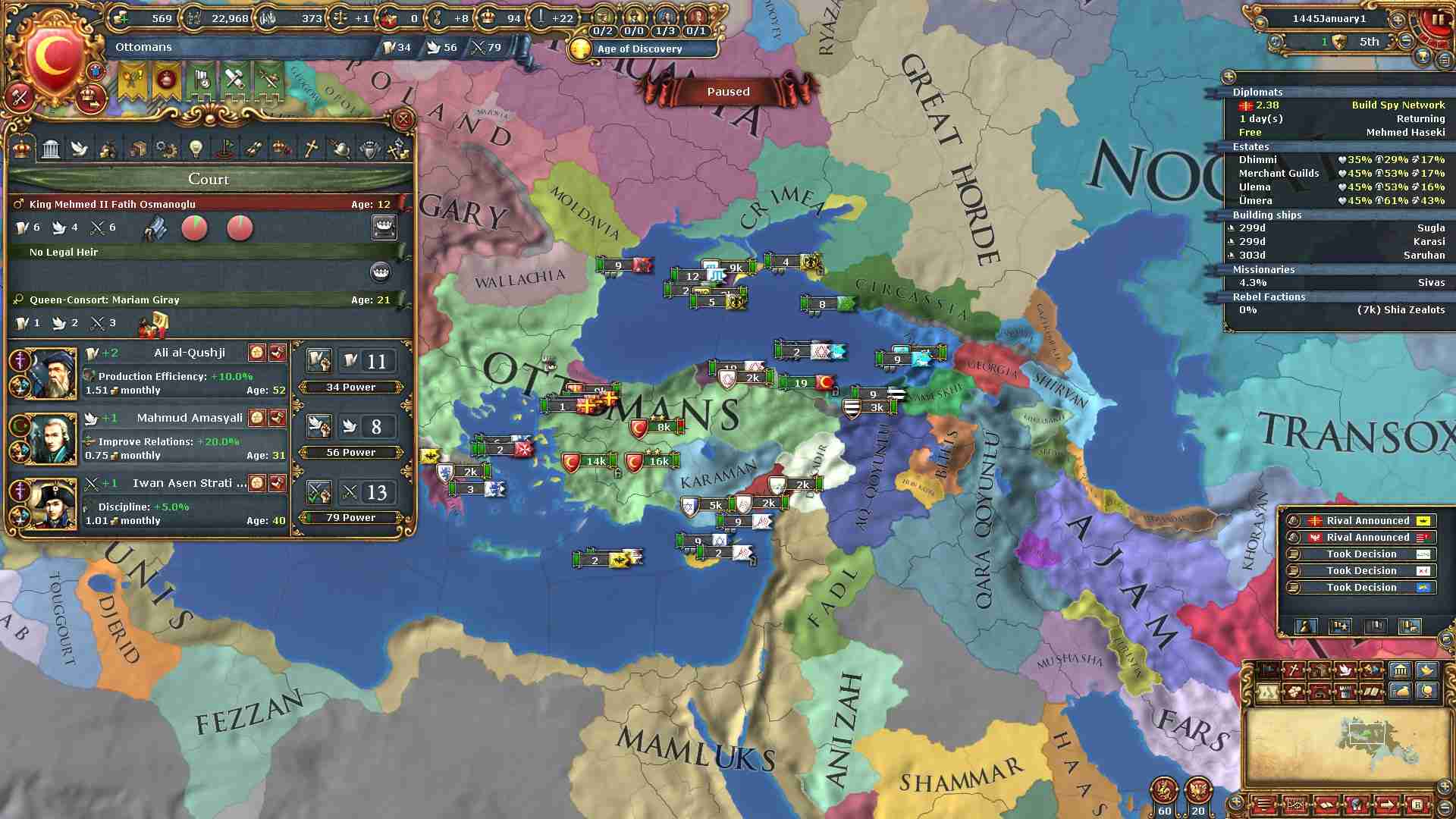 権勢アイデアの6つ目を獲得し、オスマンの2番目のナショナルアイデアを得ました。
