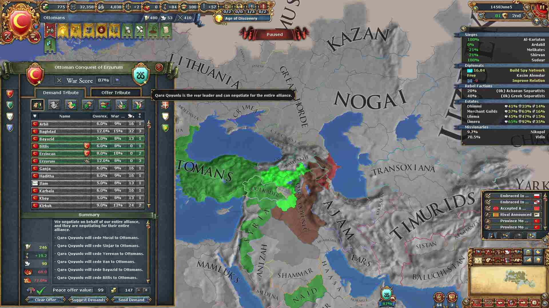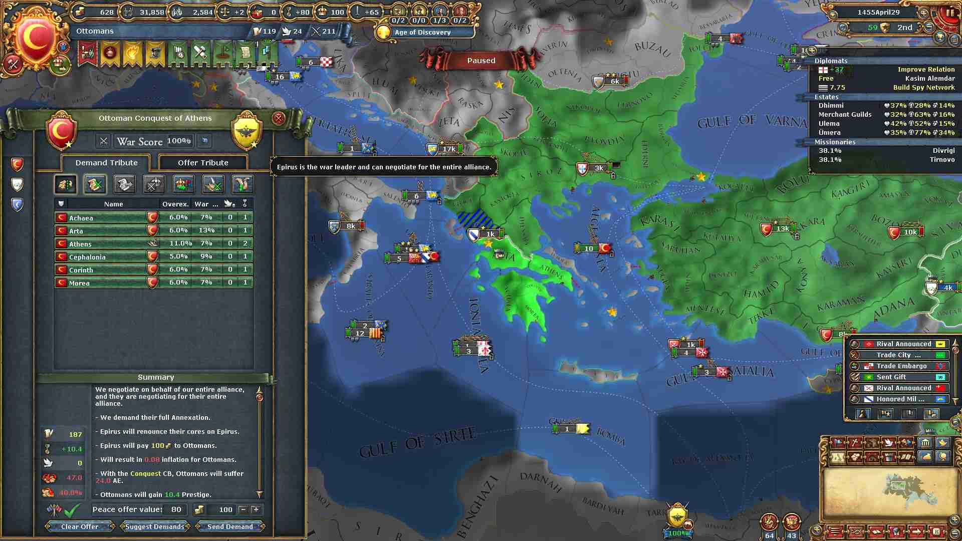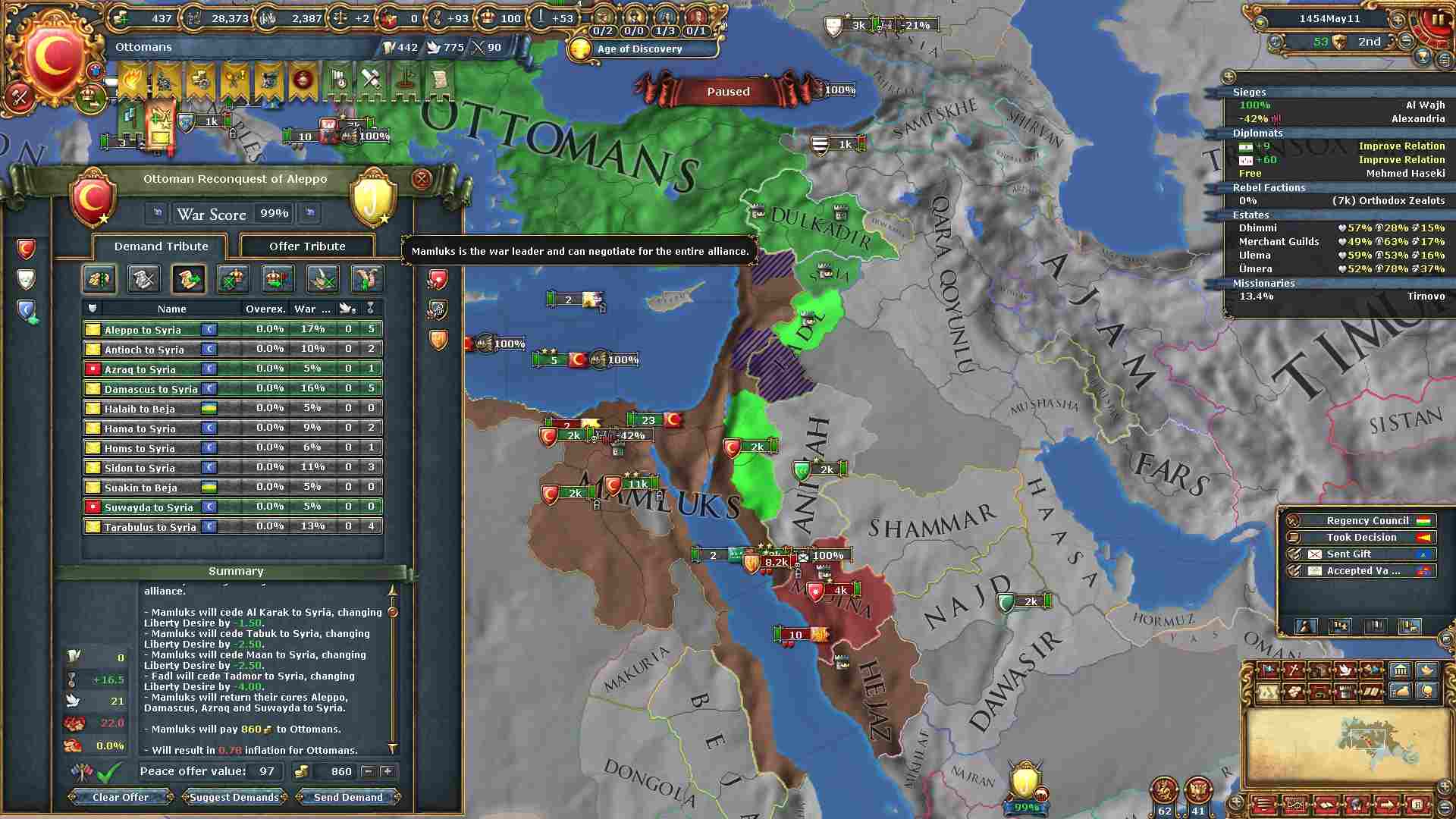 ラマザンとの和平前にナジェドからAE対策のために統治点50点を消費して、