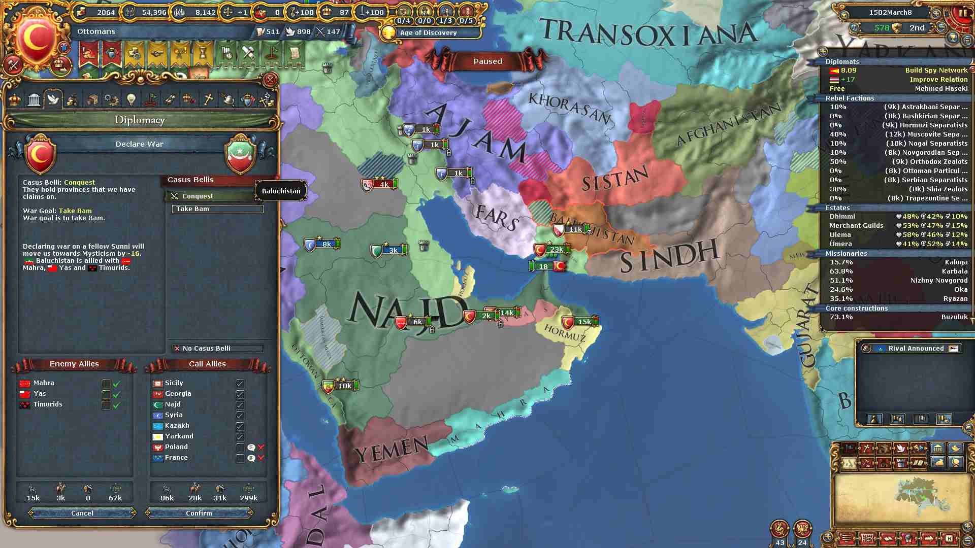 今後アジャムと旧ティムールの属国からコア州を巻き上げていきます。