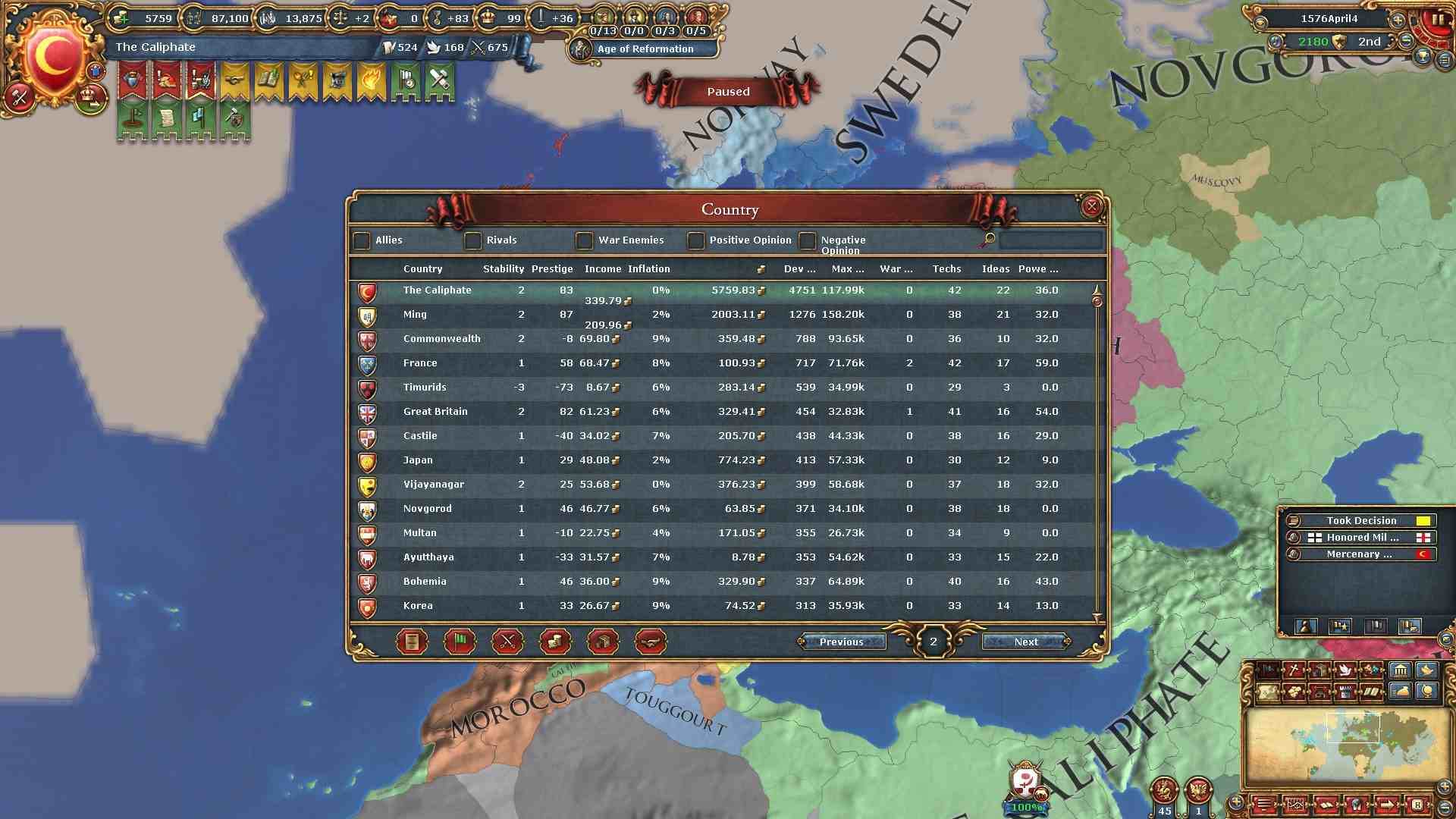 属国:ナジュド、ヤルカンド、ティムール、ノヴゴロド、モロッコ、ムルタン、アラゴン