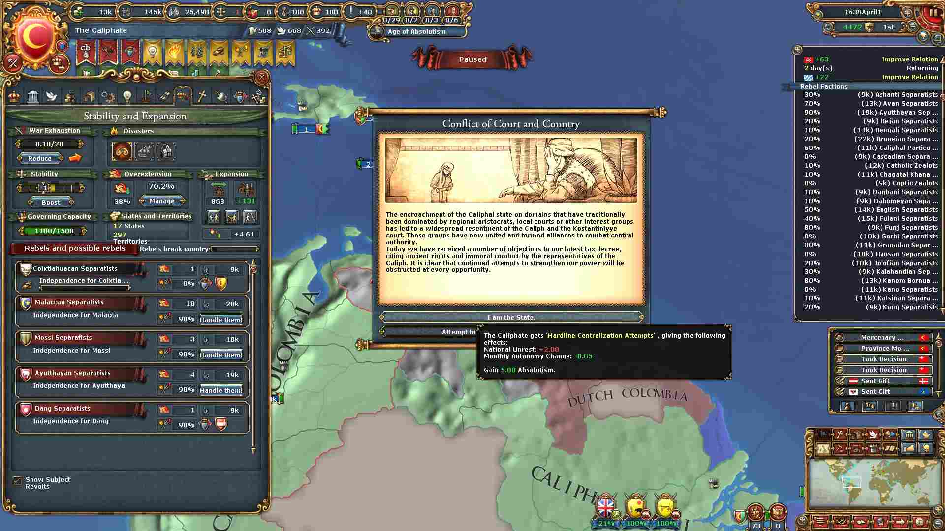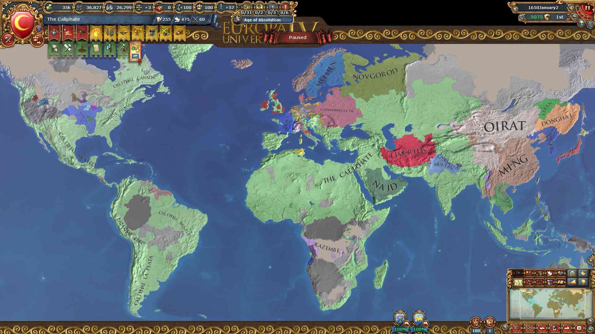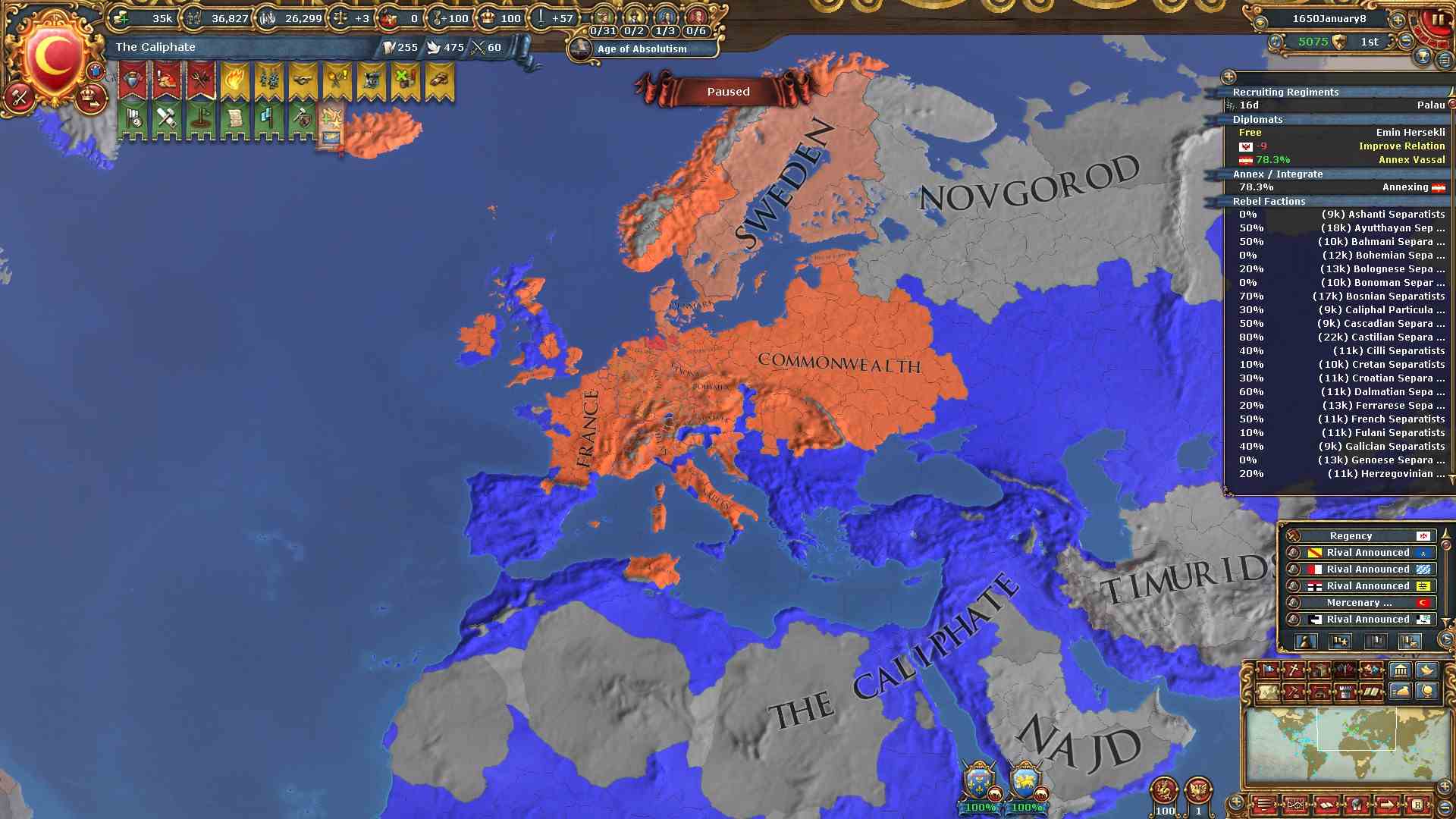 現バージョンから絶対主義値による統治効率が下がったため、拡大スピードが以前より下がっています。