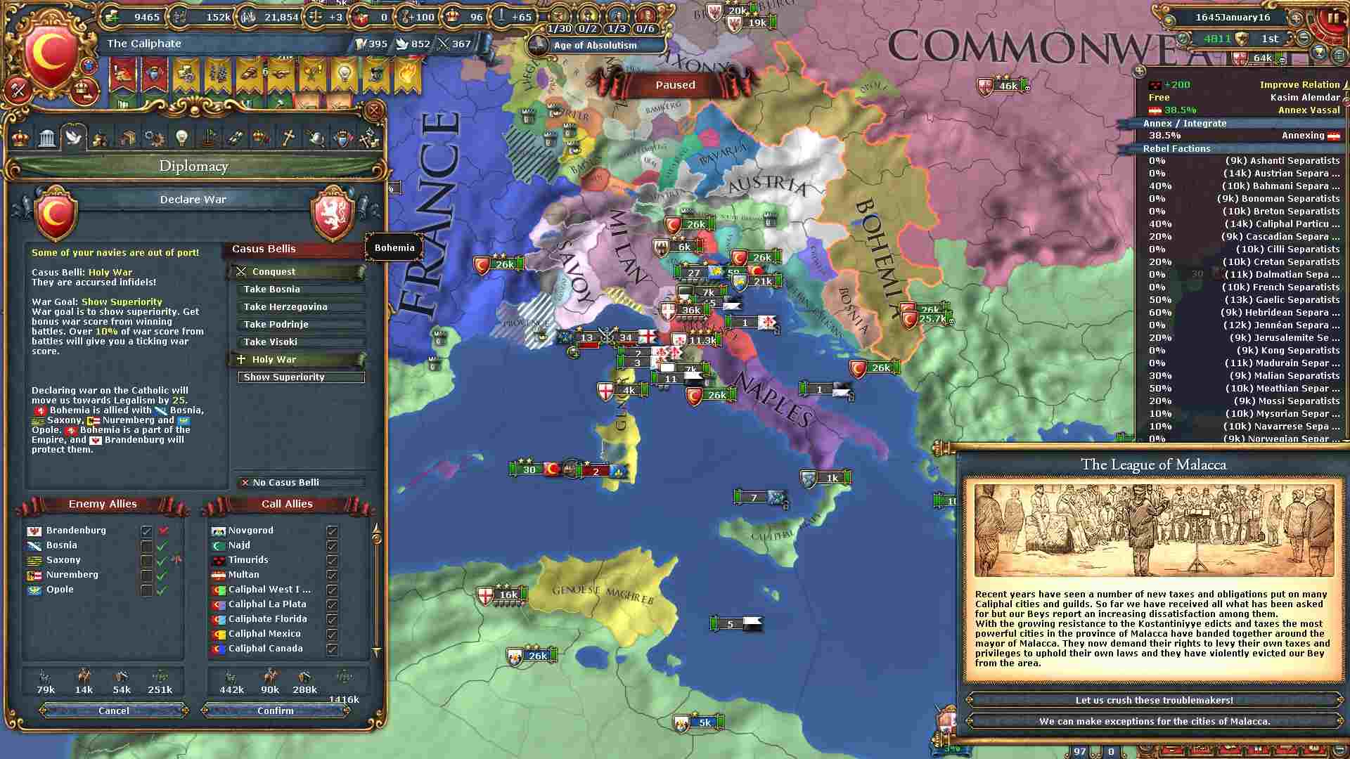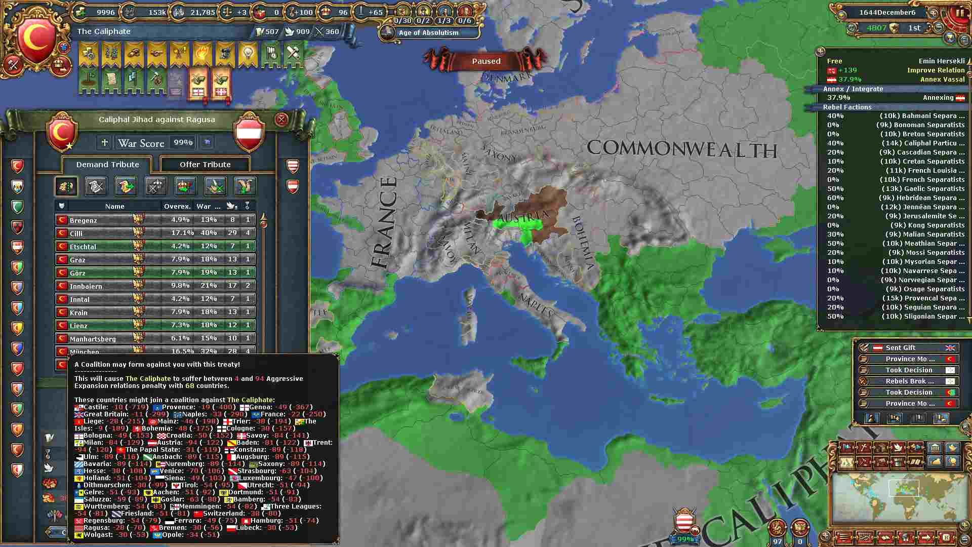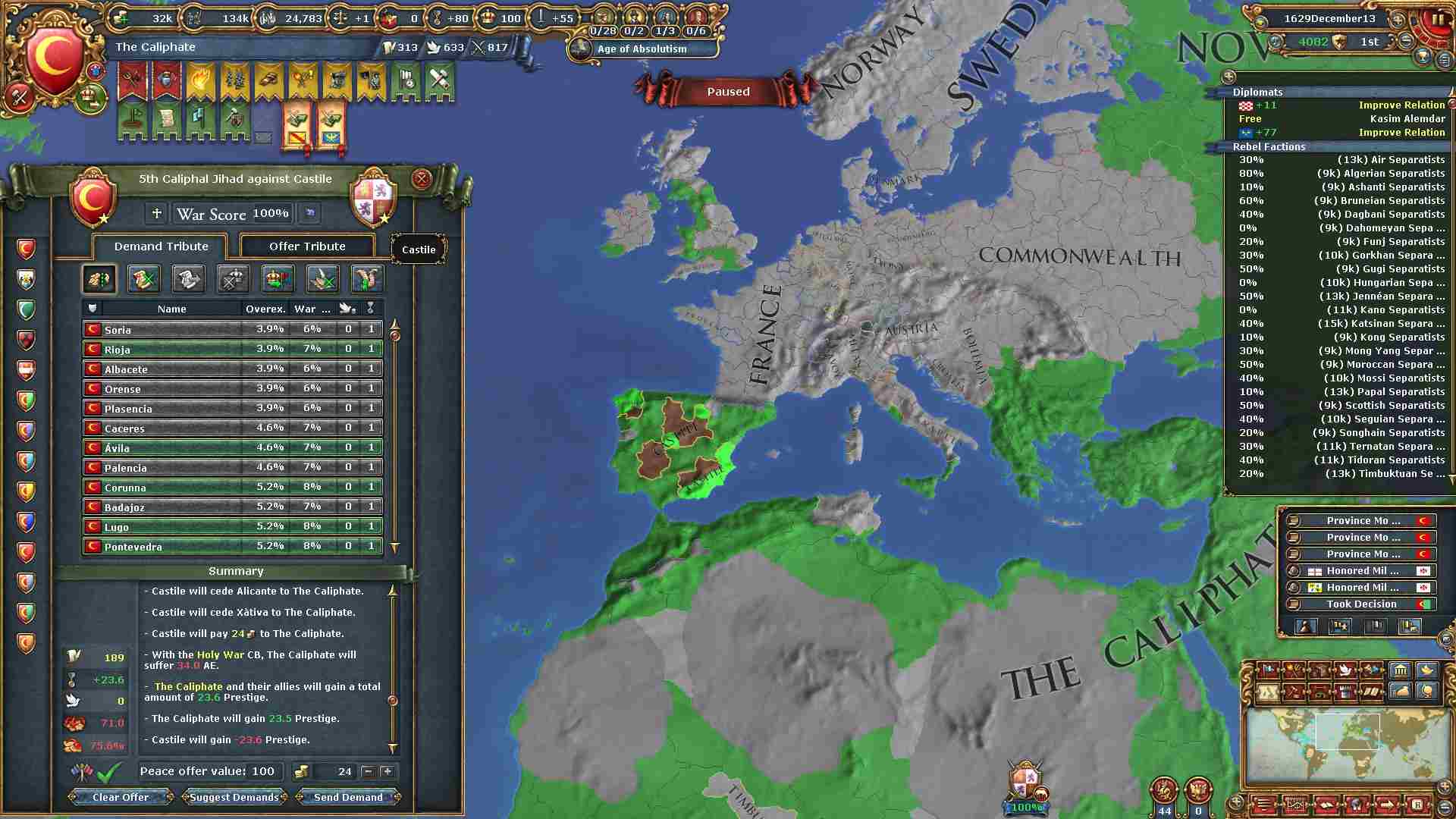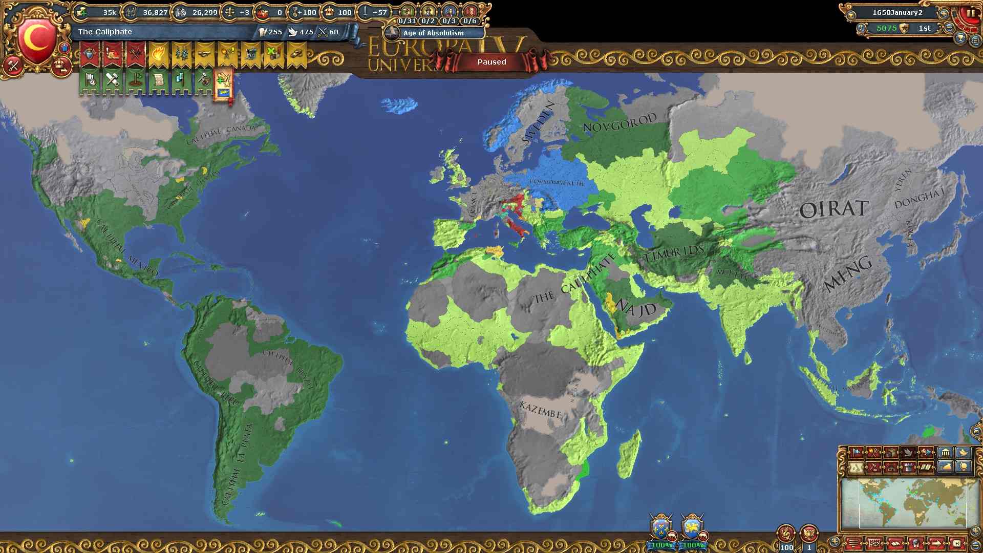 現バージョンから絶対主義値による統治効率が下がったため、拡大スピードが以前より下がっています。