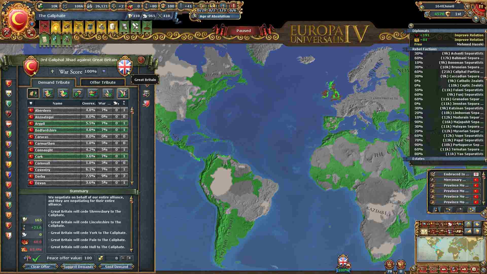 聖公会に改宗しているのでAEを気にせずにブリテン島の領土を奪っています。