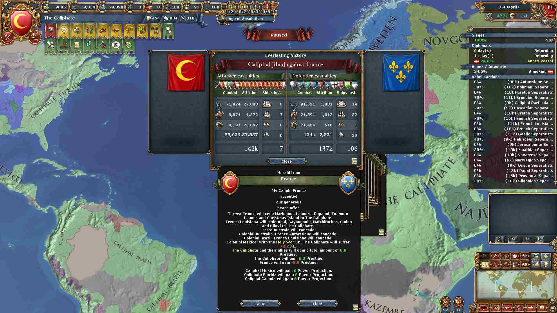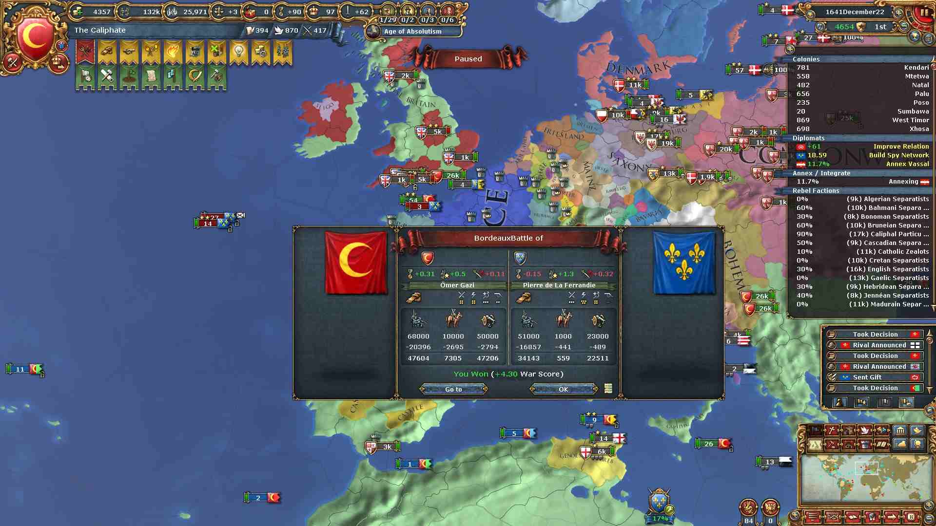 フランス軍は強いですがオスマンの軍量には為す術もありませんでした。