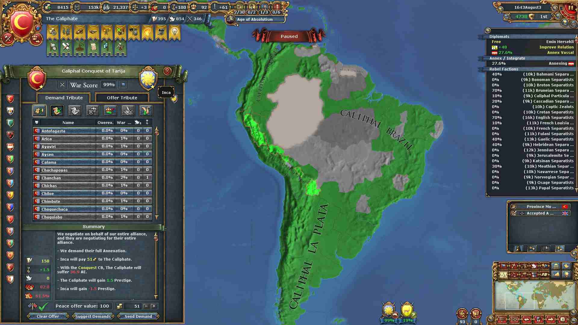 南米の現地国家を全て滅ぼしました。