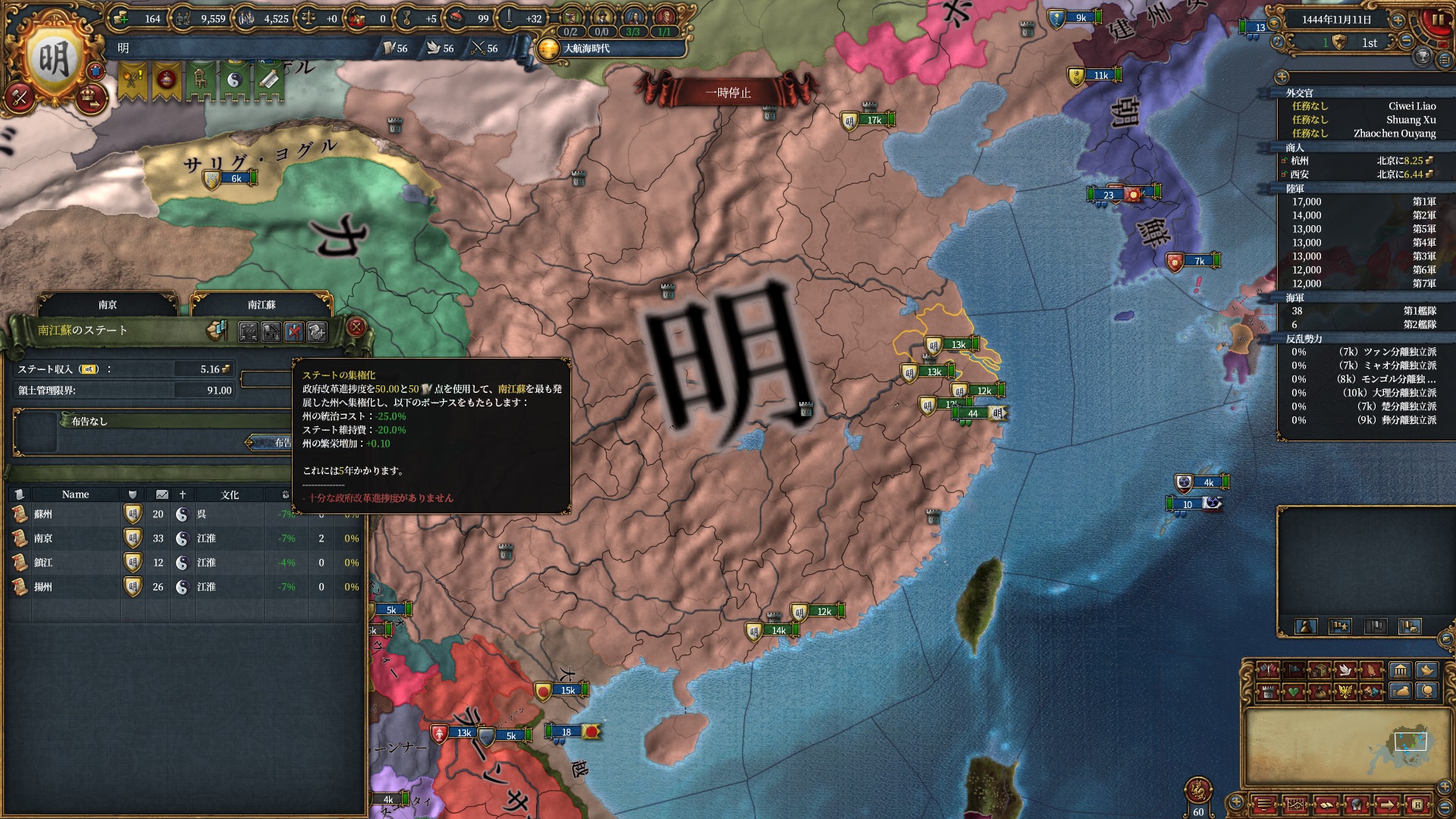 新:政府改革ポイント50とADM50を消費し、ステート内の各州の統治キャパ-25%など(要5年)