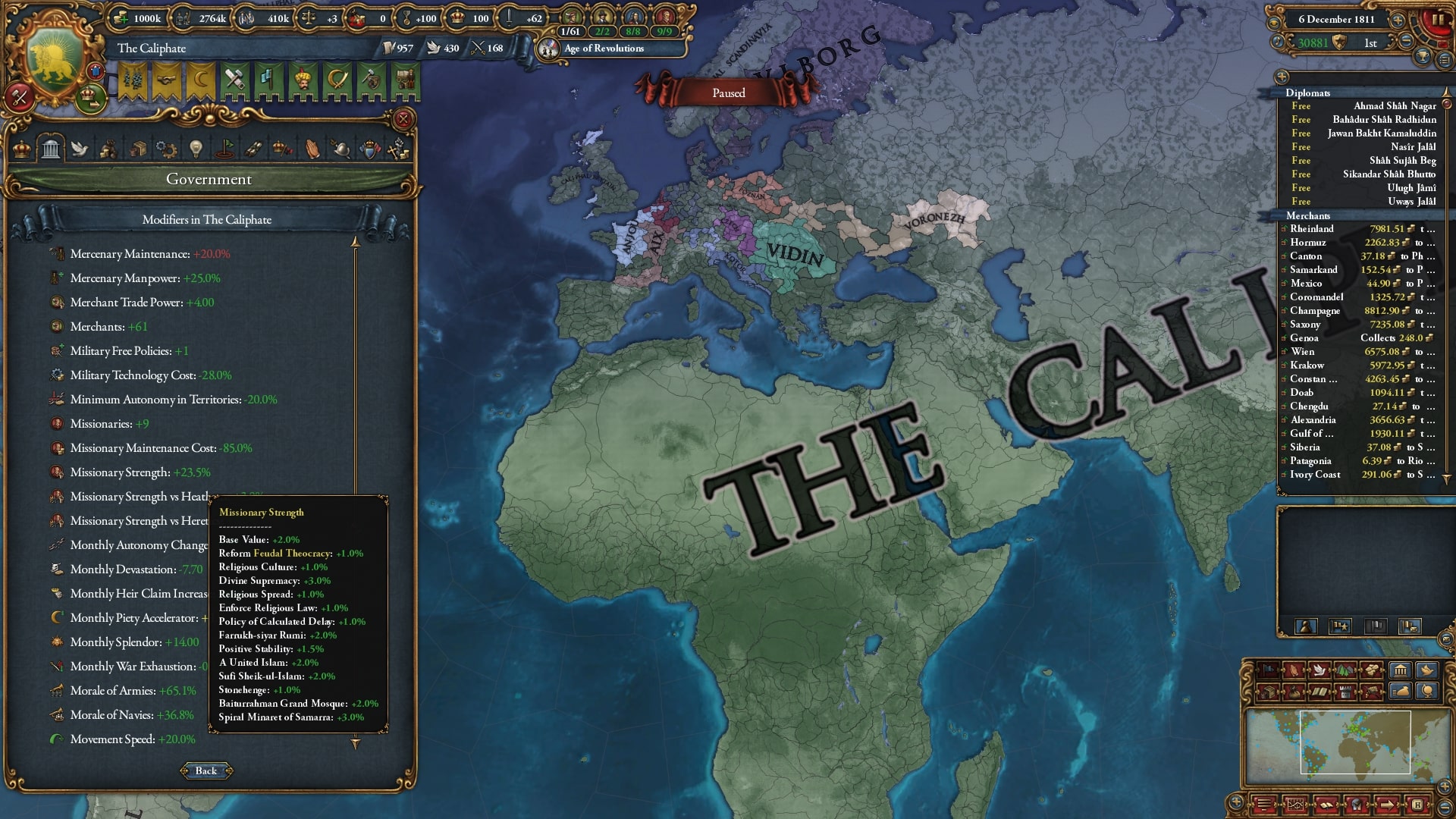 安定度+1.5、特権+1(Religious Culture)、時限イベント+2(The Sheik-ul-Islam)