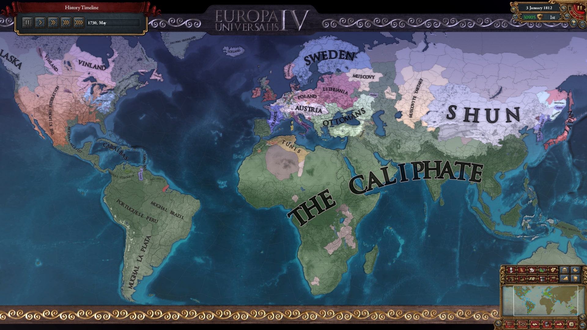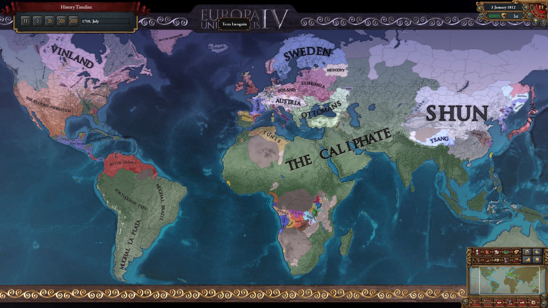 Muscovyの反乱に気づかずまさかのカムバック。北米の侵攻に手間取る。イングランド進出。アフリカ南部塗り絵完了。