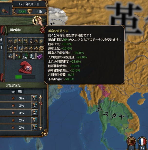 さらにOEイベントで分離主義が増えたとしても絶対主義とは違い革命情熱は自治率を上げても下がらないためノンストレスでした。