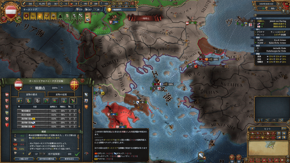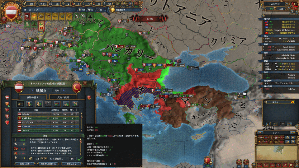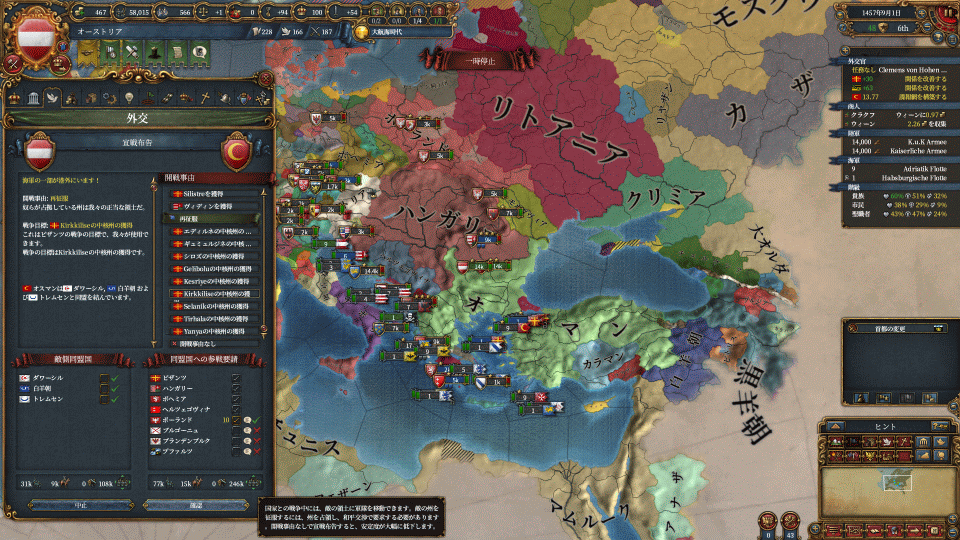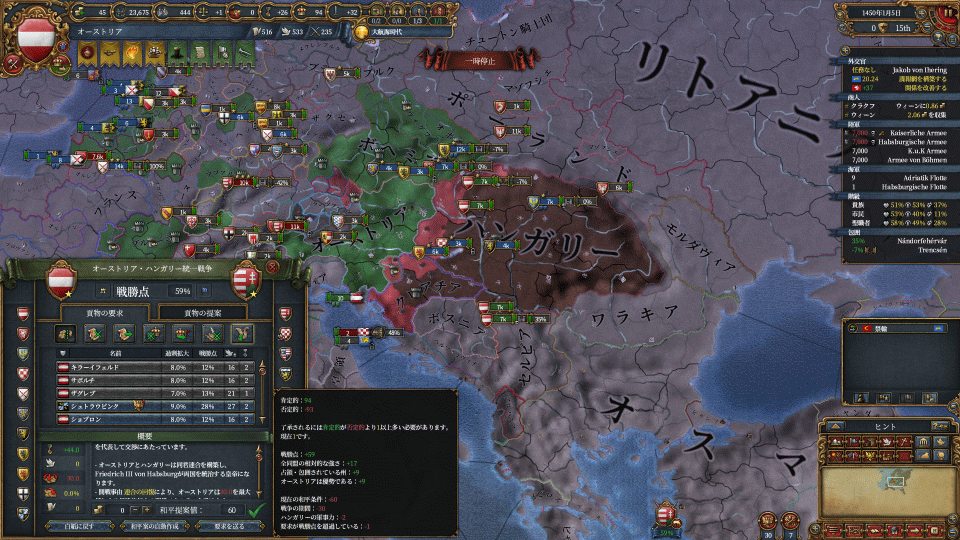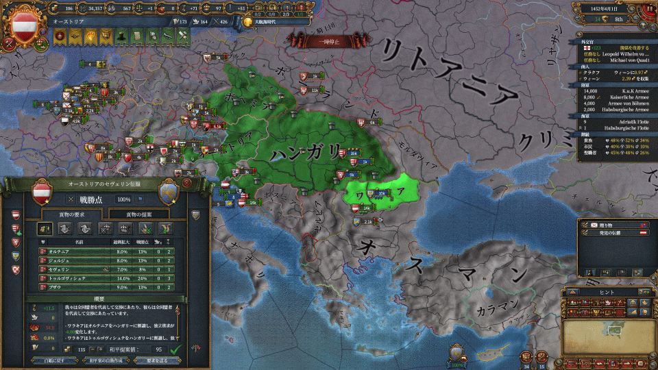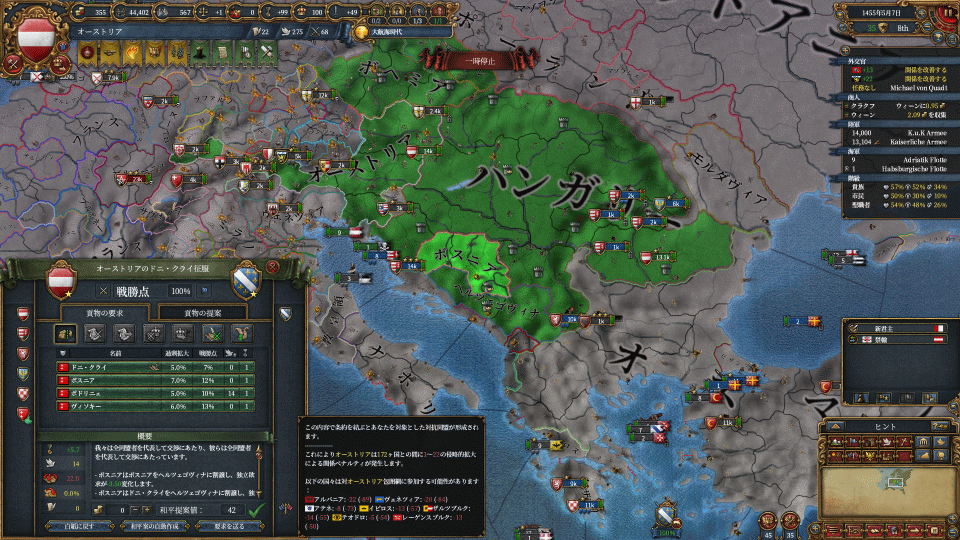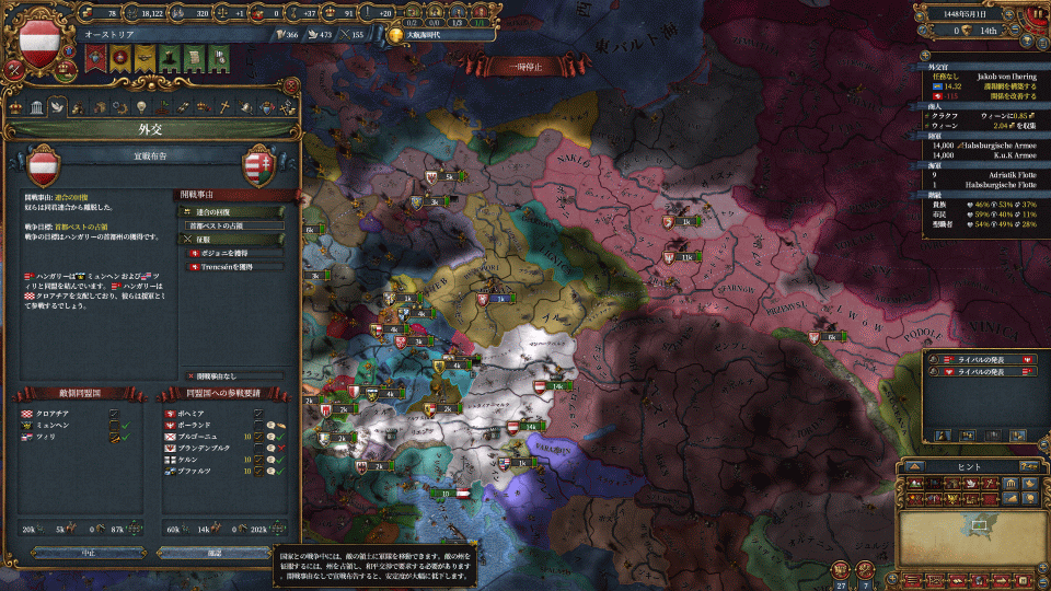 まずはハンガリーの請求権でワラキア攻め、付いてきたヘルツェゴビナを属国化します。