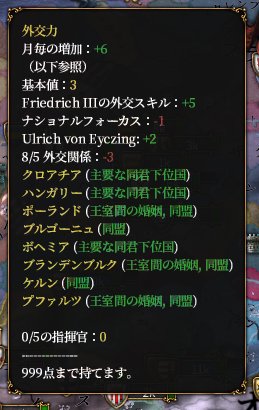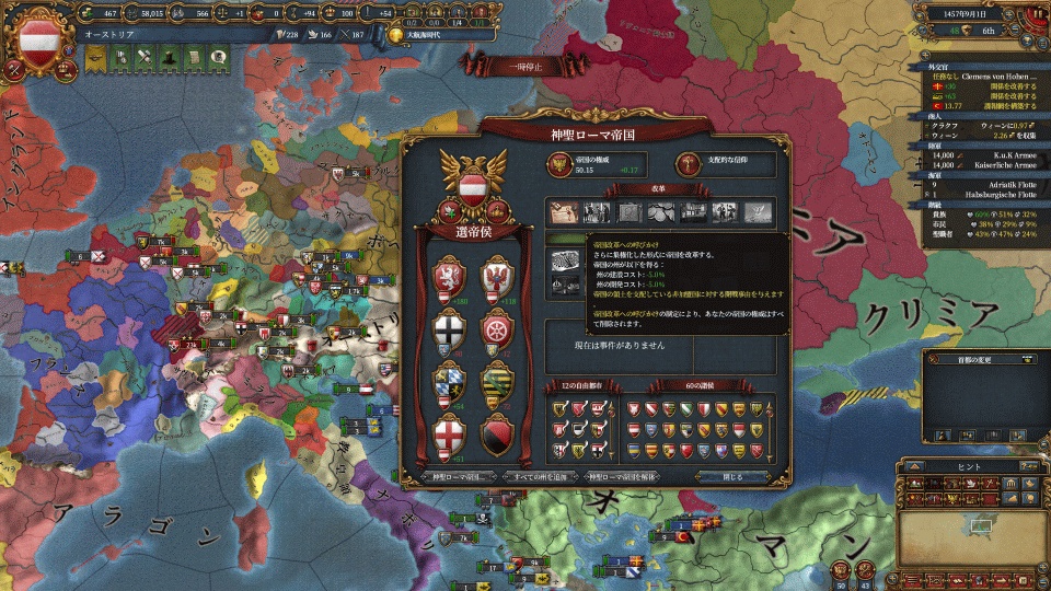 選帝侯との同盟を切っても大丈夫なのかもしれませんが、安定を求めて外交点マイナスを受け入れています。