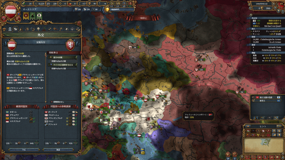 んで約2年で友好度が溜まったのでボヘミア同君戦争いきます。