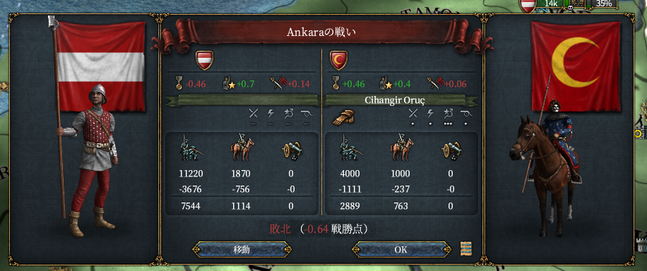 オスマン先生の軍質にやられまくりながら、なんとか軍量で優勢を確保しつつ・・