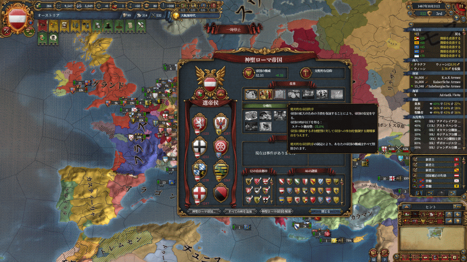 3番目の改革を通して、帝国の拡大CBを手に入れました!ここからがHRE改革本番です。