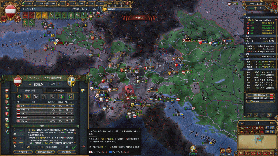 ミラノが帝国領奪うから取り返しておきました。