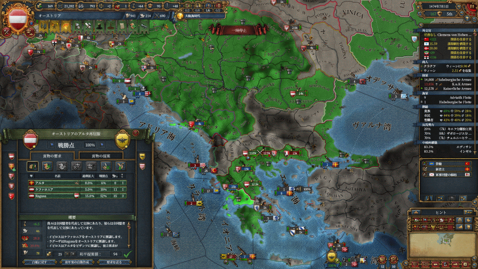 ジェノバ加入(既に帝国の権威が50超えてるのでロス)